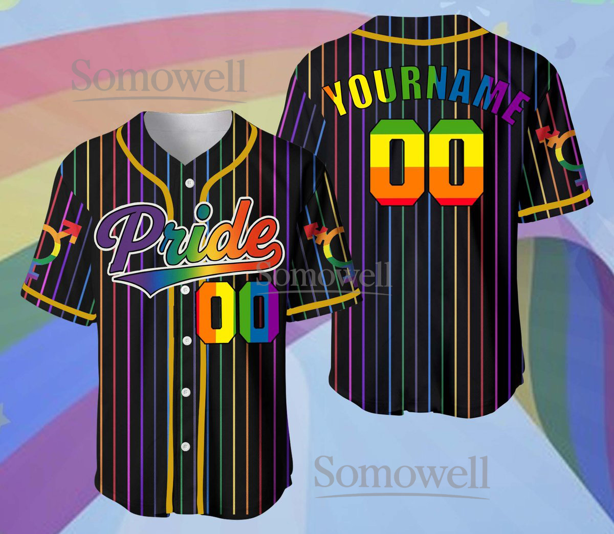 Custom Pride Baseball Jersey Rainbow Stripe Design Personalized Team Name and Number Edition