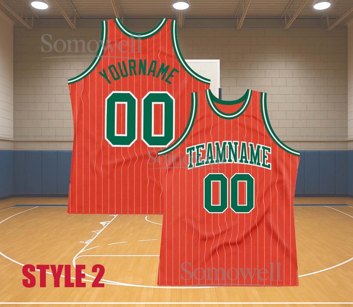 Custom Orange Pinstripe Basketball Jersey with Personalized Team Name and Number
