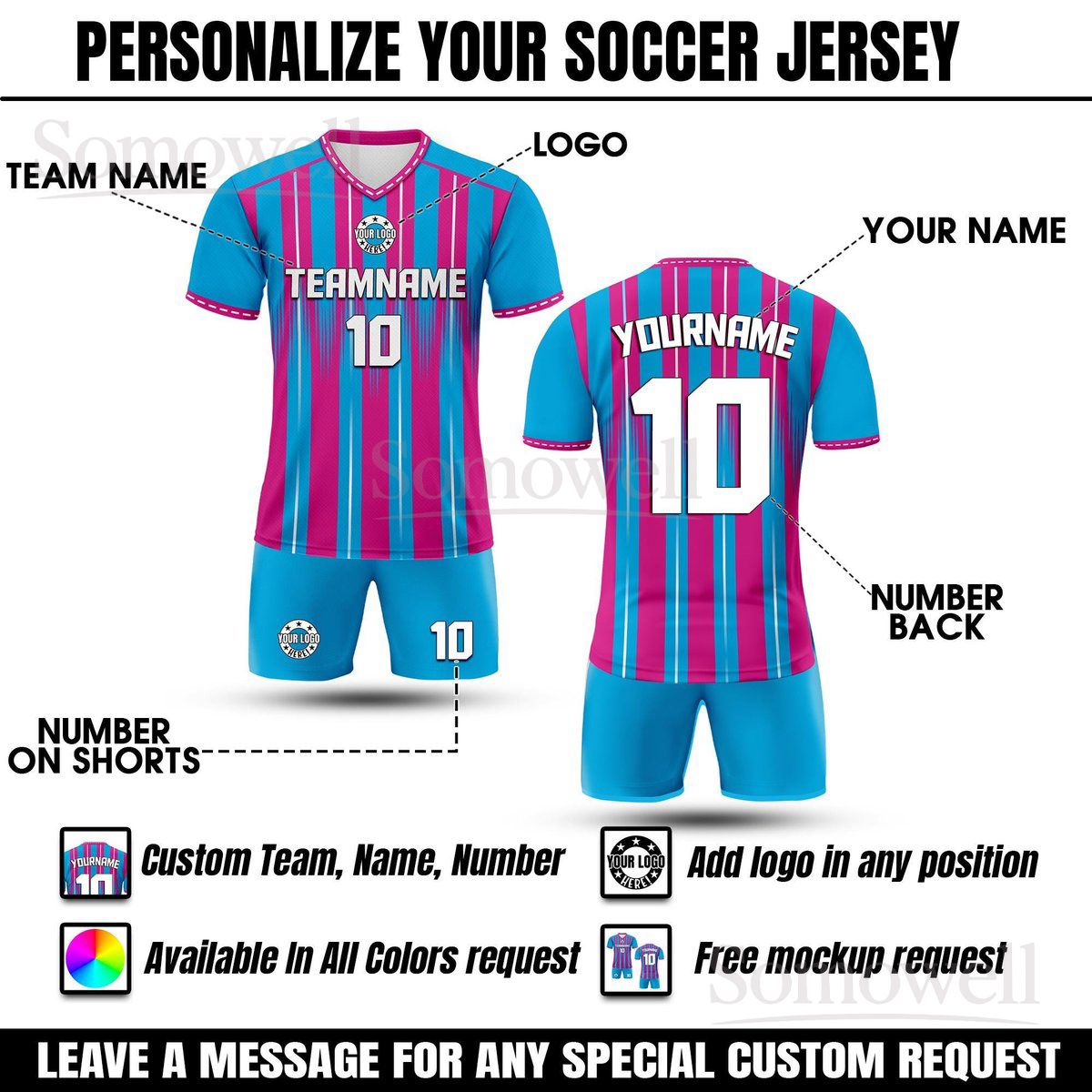 Custom Team Soccer Jersey Striped Design Personalized Name Number and Logo Edition