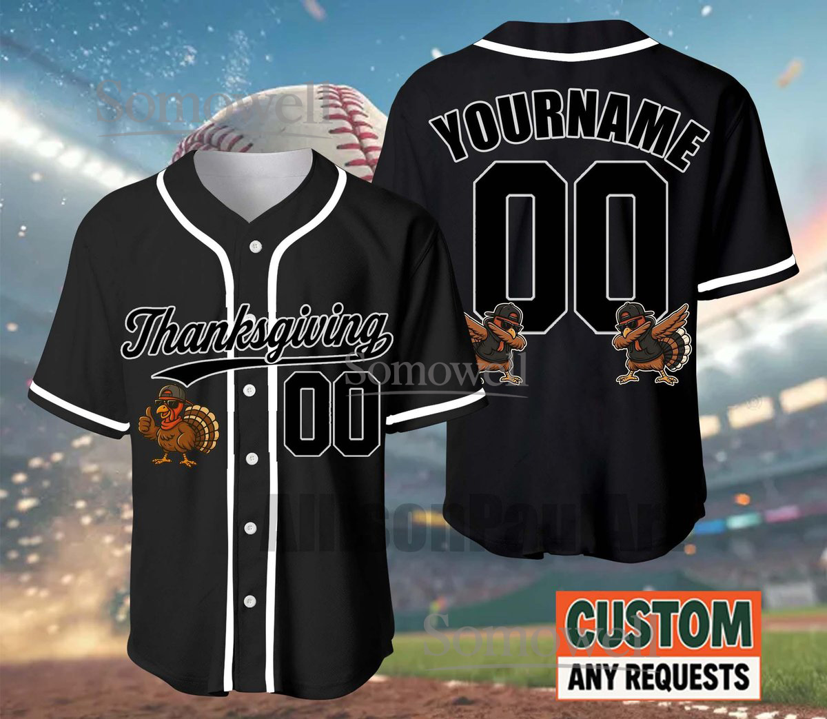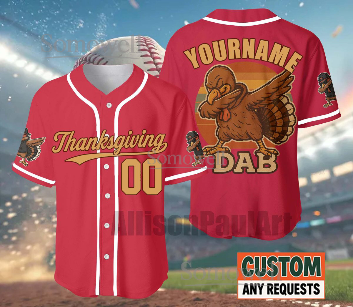 Custom Thanksgiving Baseball Jersey Turkey Dab Edition Available in Multiple Colors