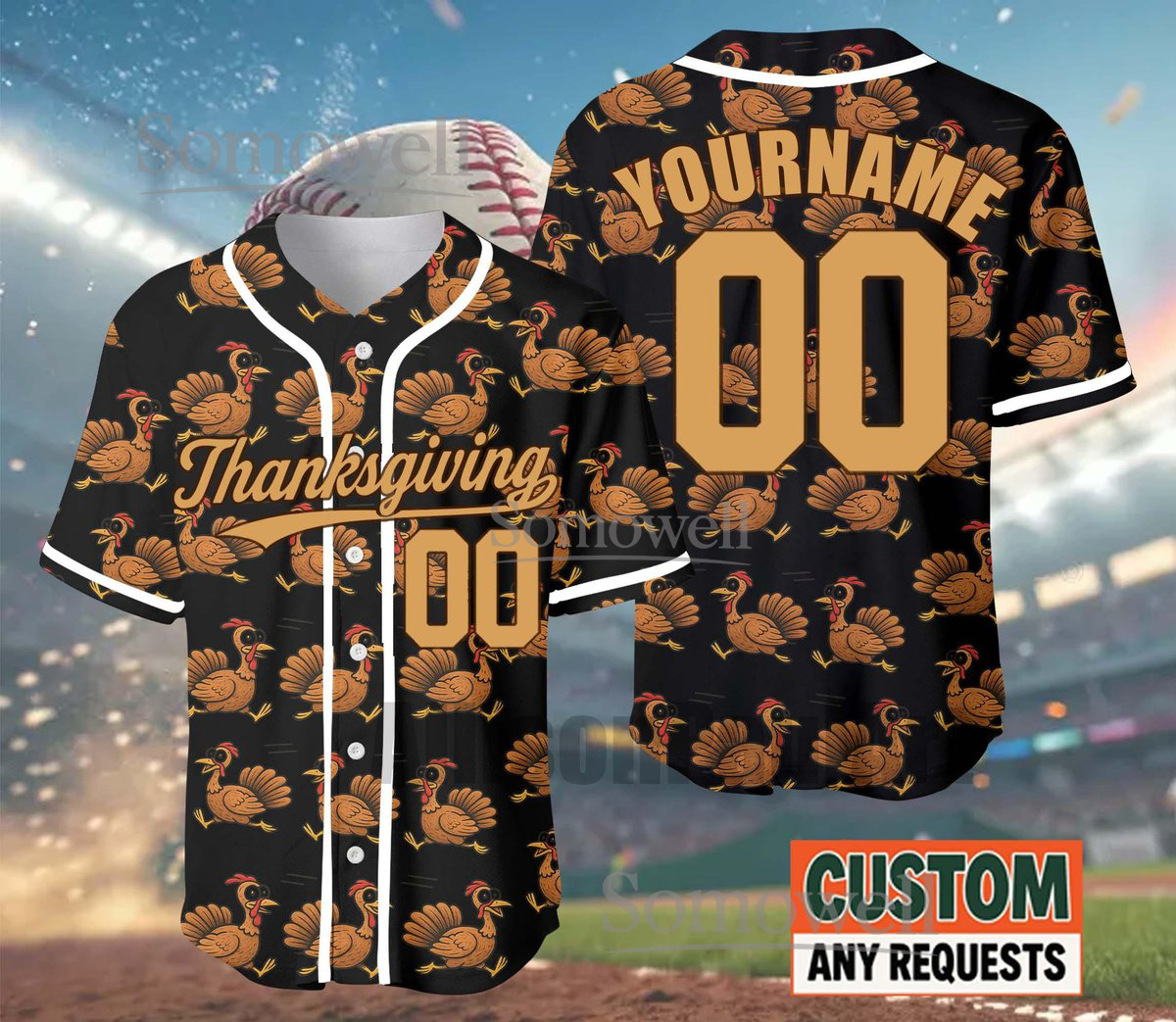 Custom Thanksgiving Baseball Jersey Turkey Pattern Edition Available in Multiple Colors