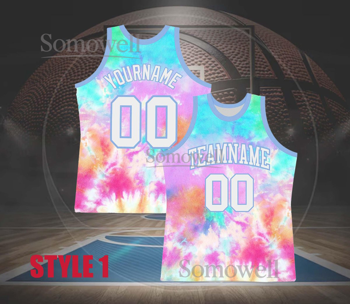 Custom Tie Dye Basketball Jersey Team Name Number Pastel Gradient Edition Available in Multiple Colors