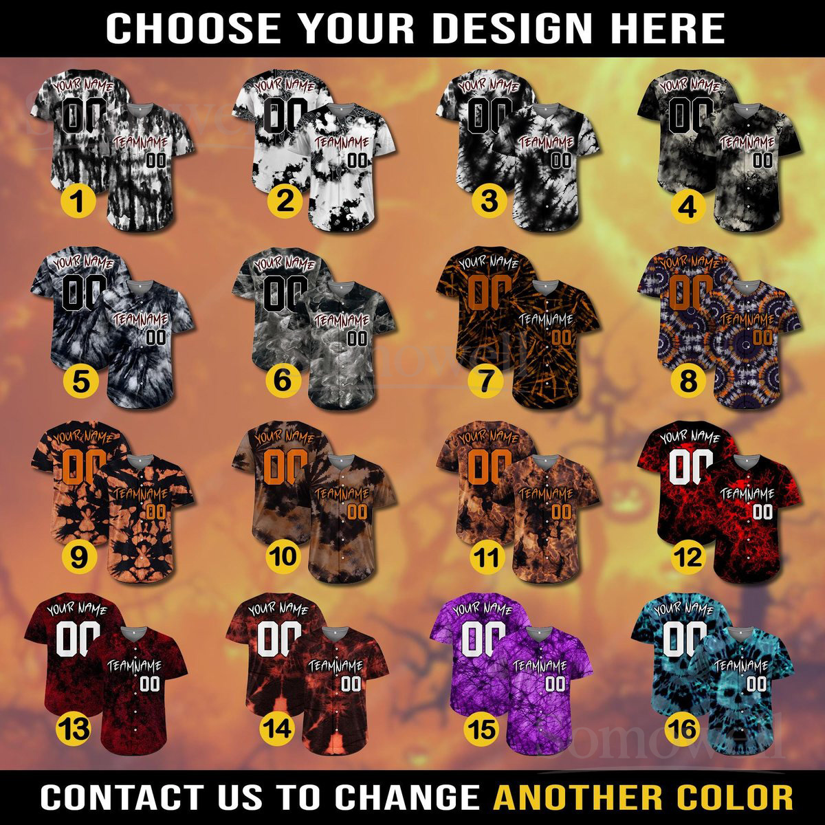 Custom Tie Dye Halloween Baseball jersey Halloween Jersey Outfit for Men Women Youth Kid Multi Color Edition