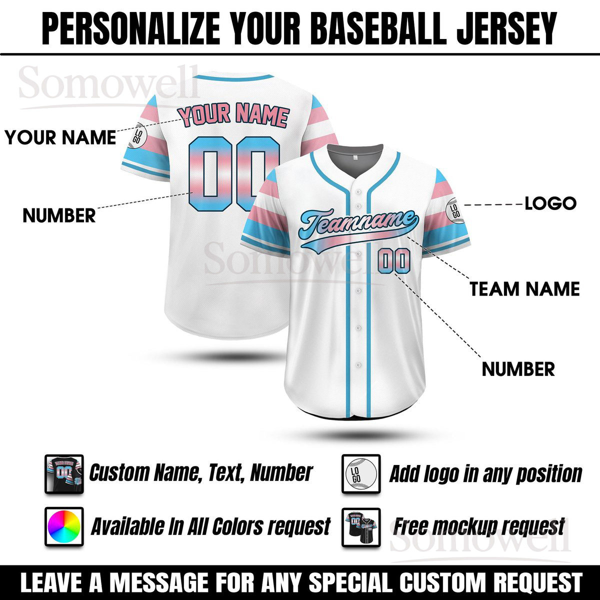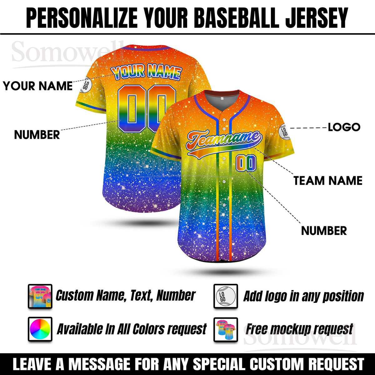 Custom Name LGBTQ Pride Month Baseball Jersey Personalized for Men and Women in Multiple Colors