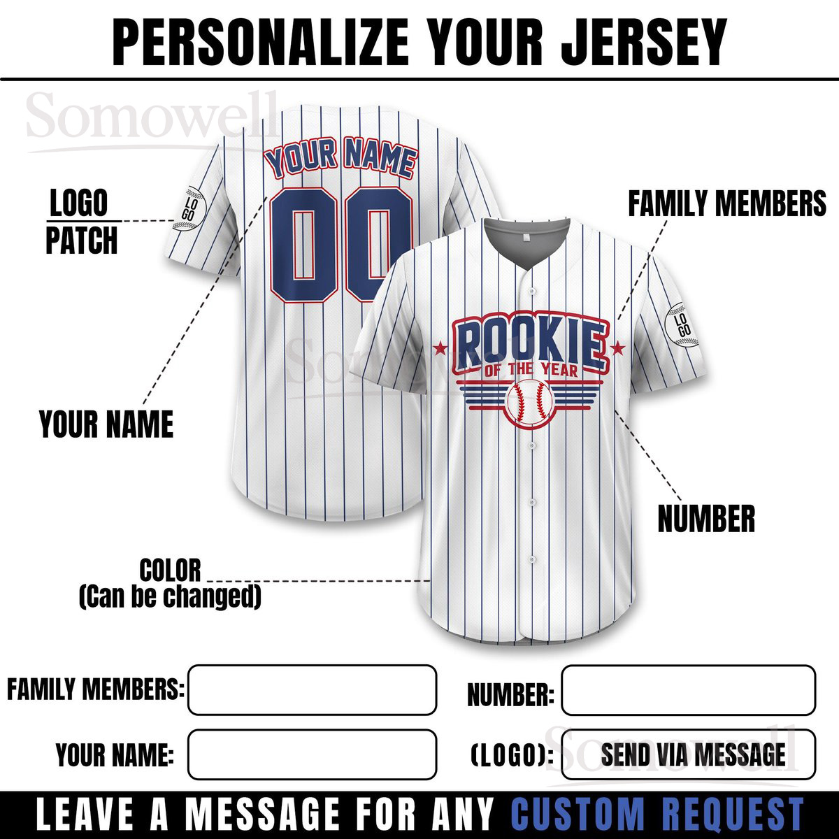 Custom Name Number Rookie Of The Year Baseball Jersey Many Colors Personalized Team Uniform