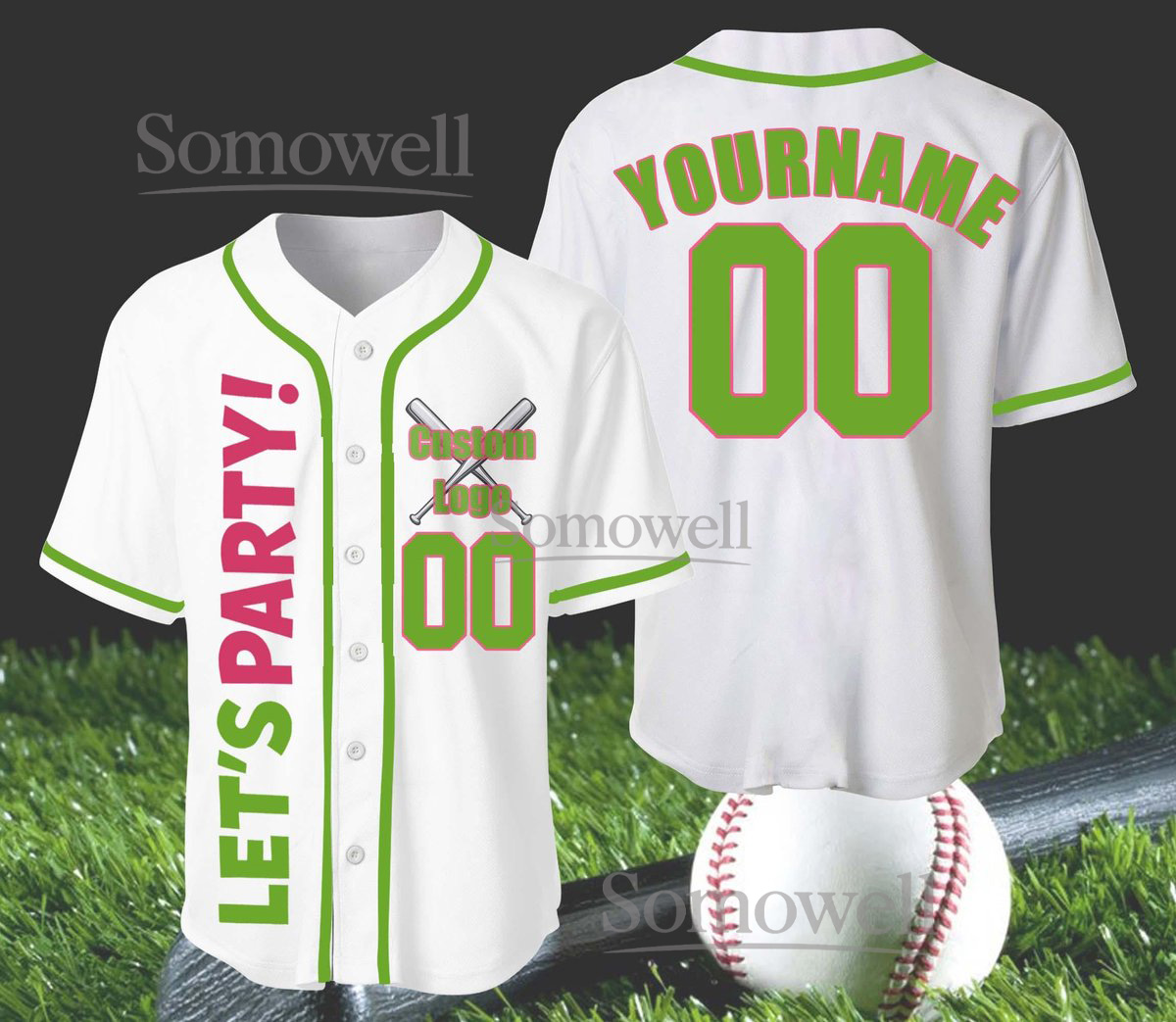 Custom Neon Baseball Jersey Black Green Trim Let’s Party Letter Print Personalized Team Name Shirt