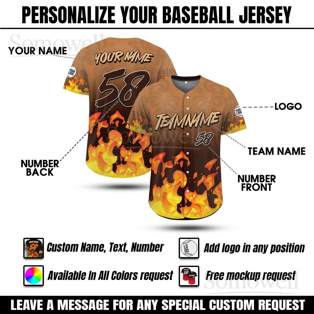 Custom Name Flame Baseball Jersey Personalized Hot Fire Design Streetwear Uniform For Adults Kids Multi Color Edition
