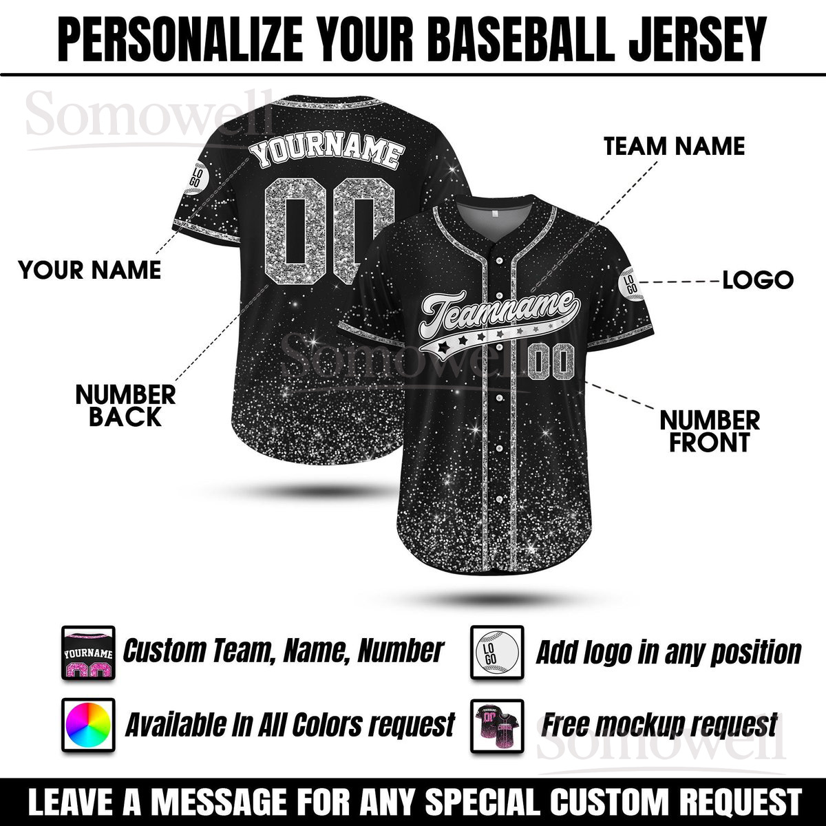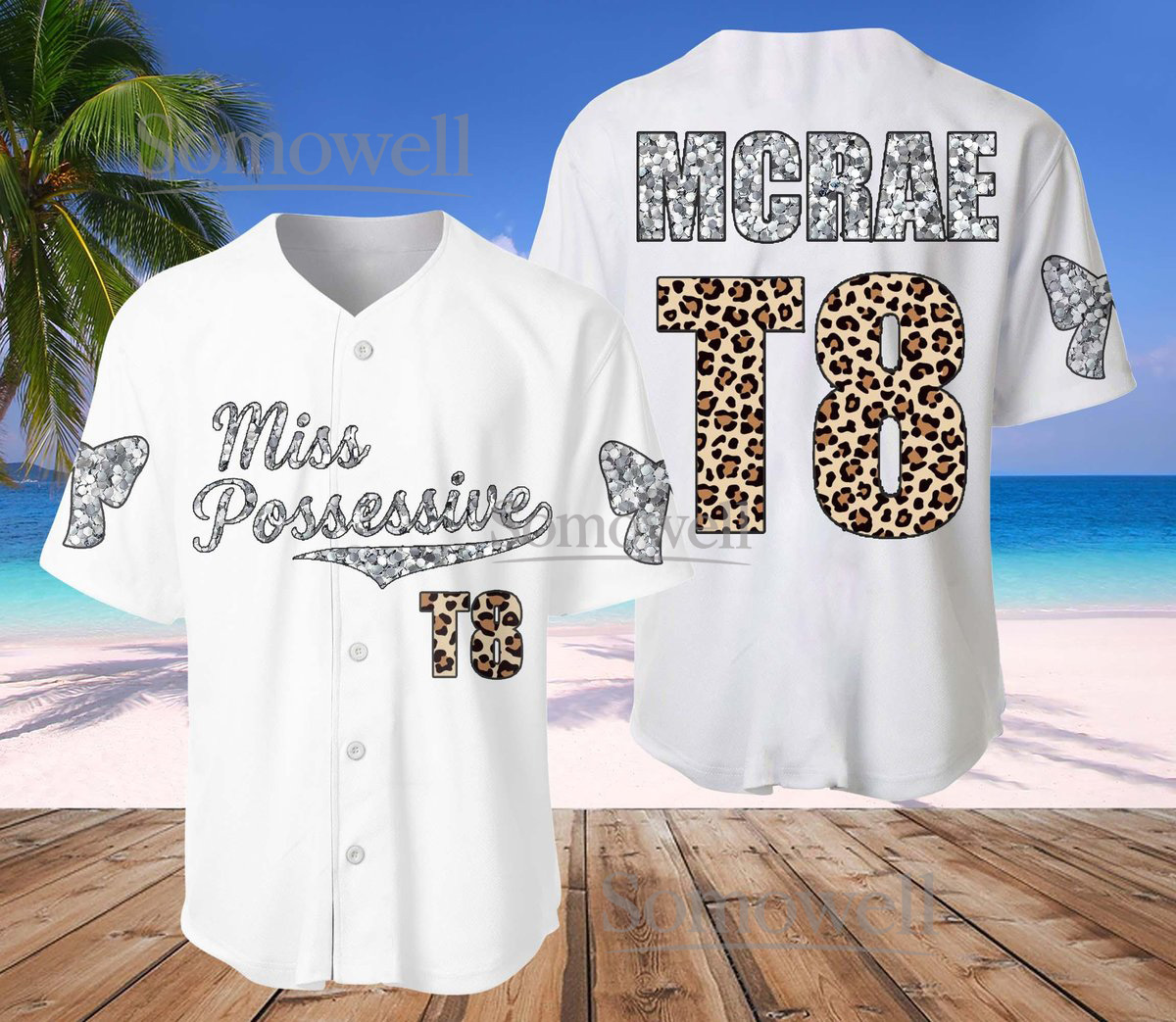 Custom Miss Possessive Baseball Jersey Leopard Silver Glitter Edition Available in Multiple Colors