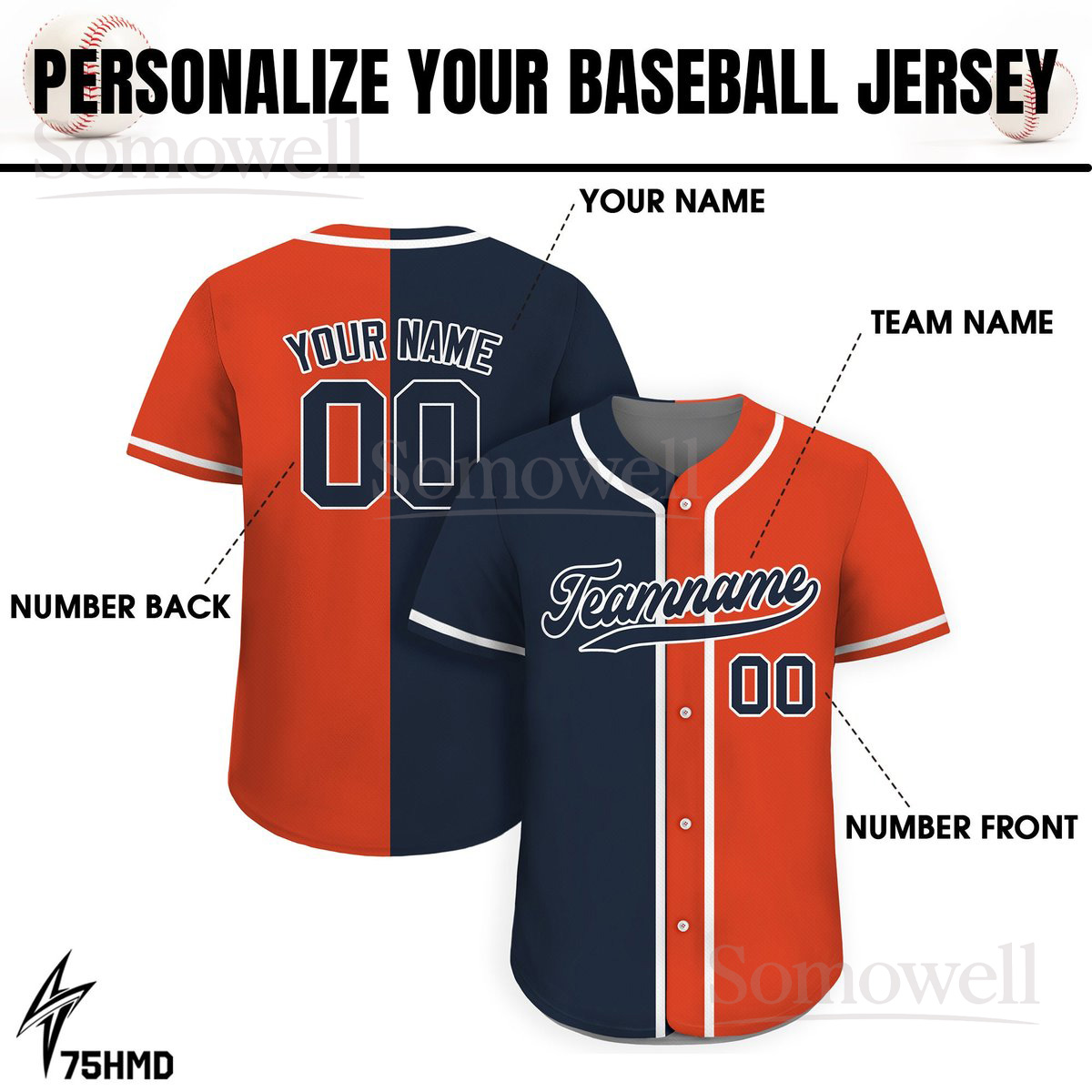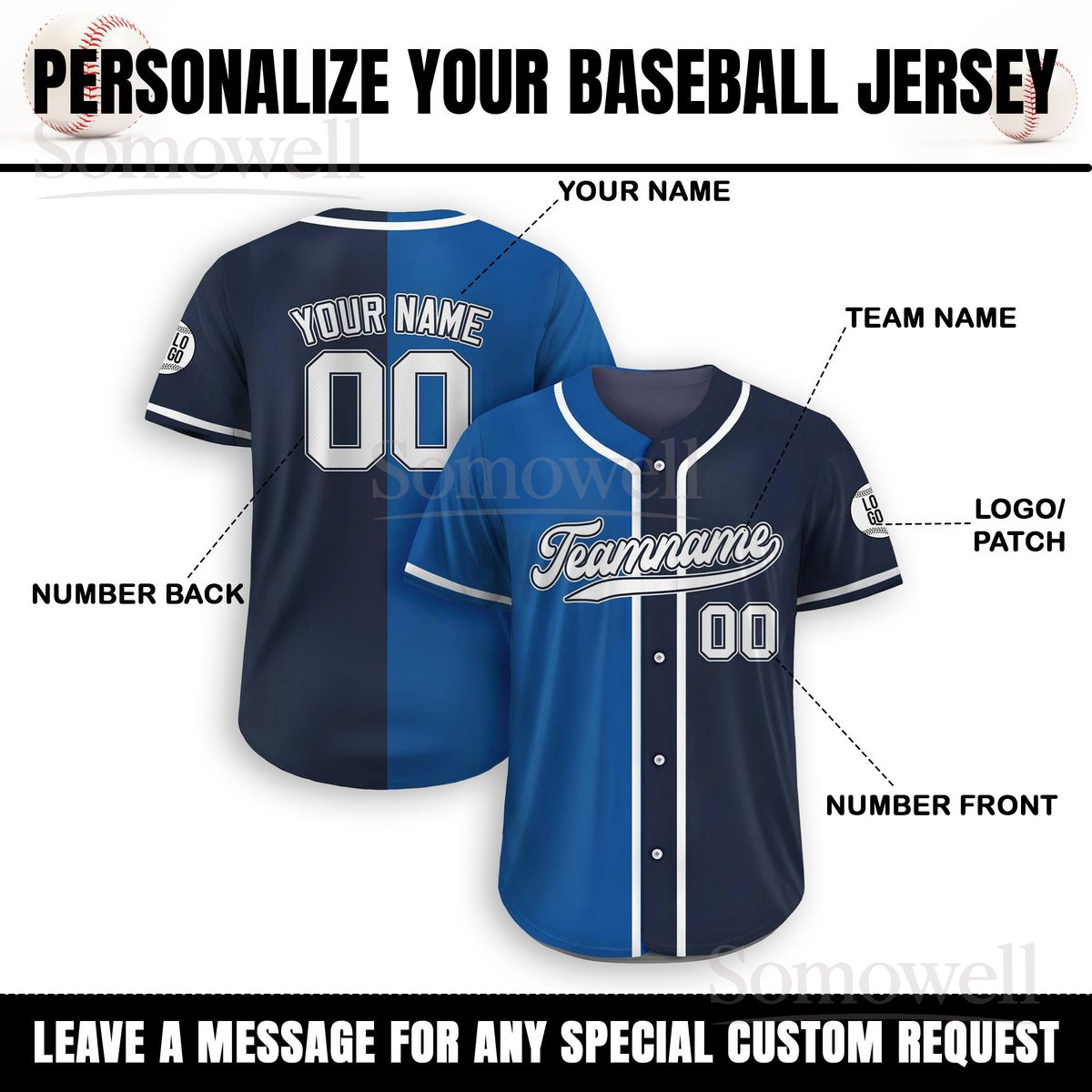 Custom Baseball Jersey Personalized Team Name Number Two Tone Split Design Stylish Sportswear for Men Women Multi Color Edition