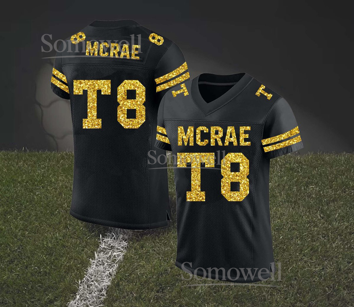 Custom Mcrae T8 Glitter Football Jersey Team Name Number Pink Sparkle Edition Available in Multiple Colors