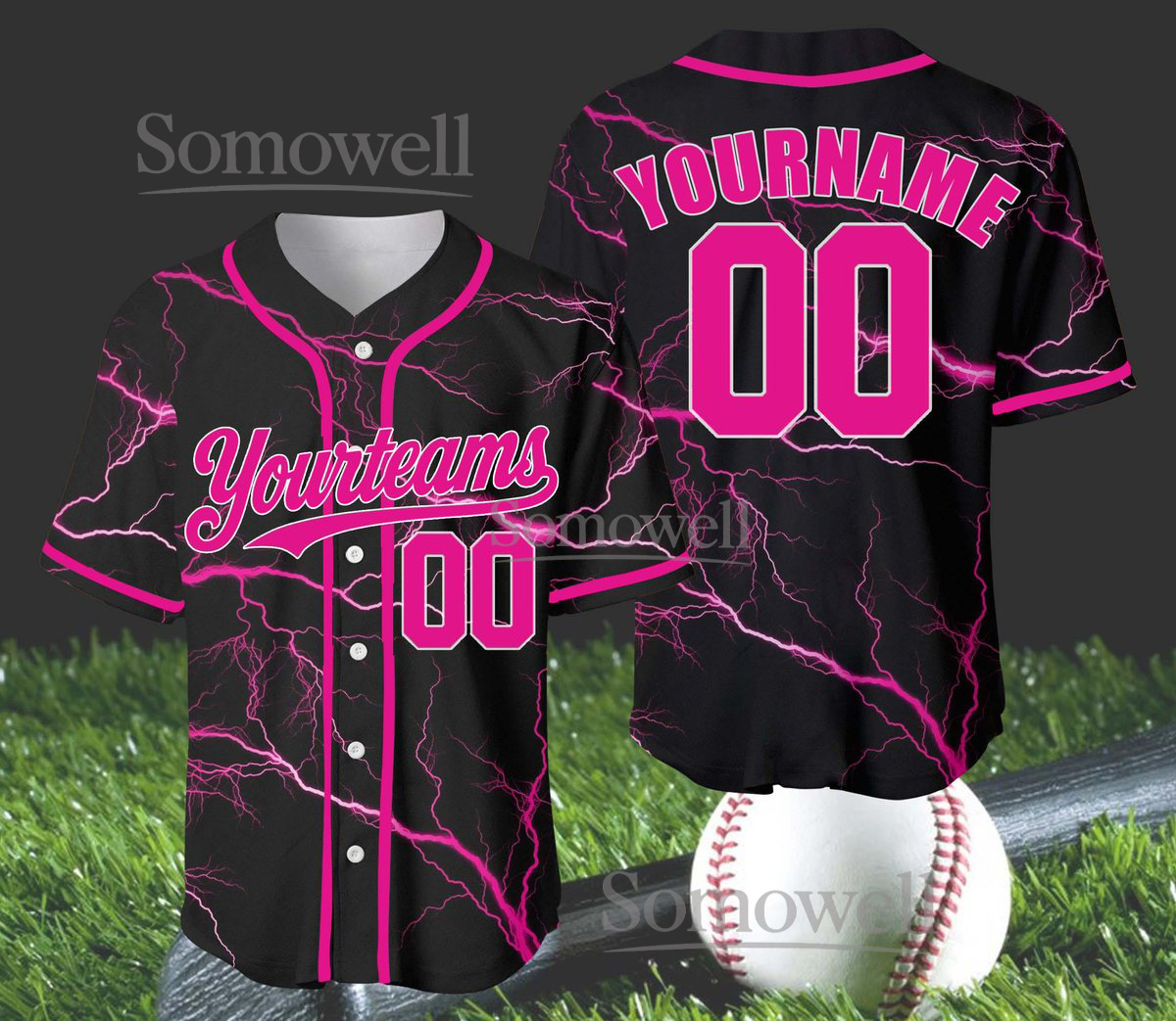 Custom Lightning Baseball Jersey with Personalized Team Name and Number