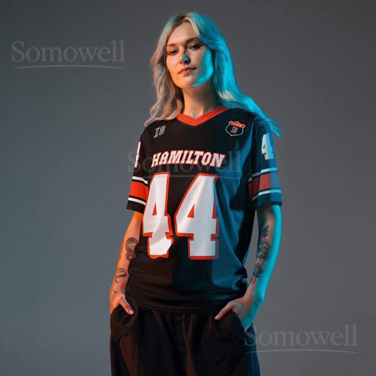 Custom Lewis Hamilton Ferrari F1 Football Jersey Shirt for Racing Fans Red and Black Motorsport Team Supporter Apparel