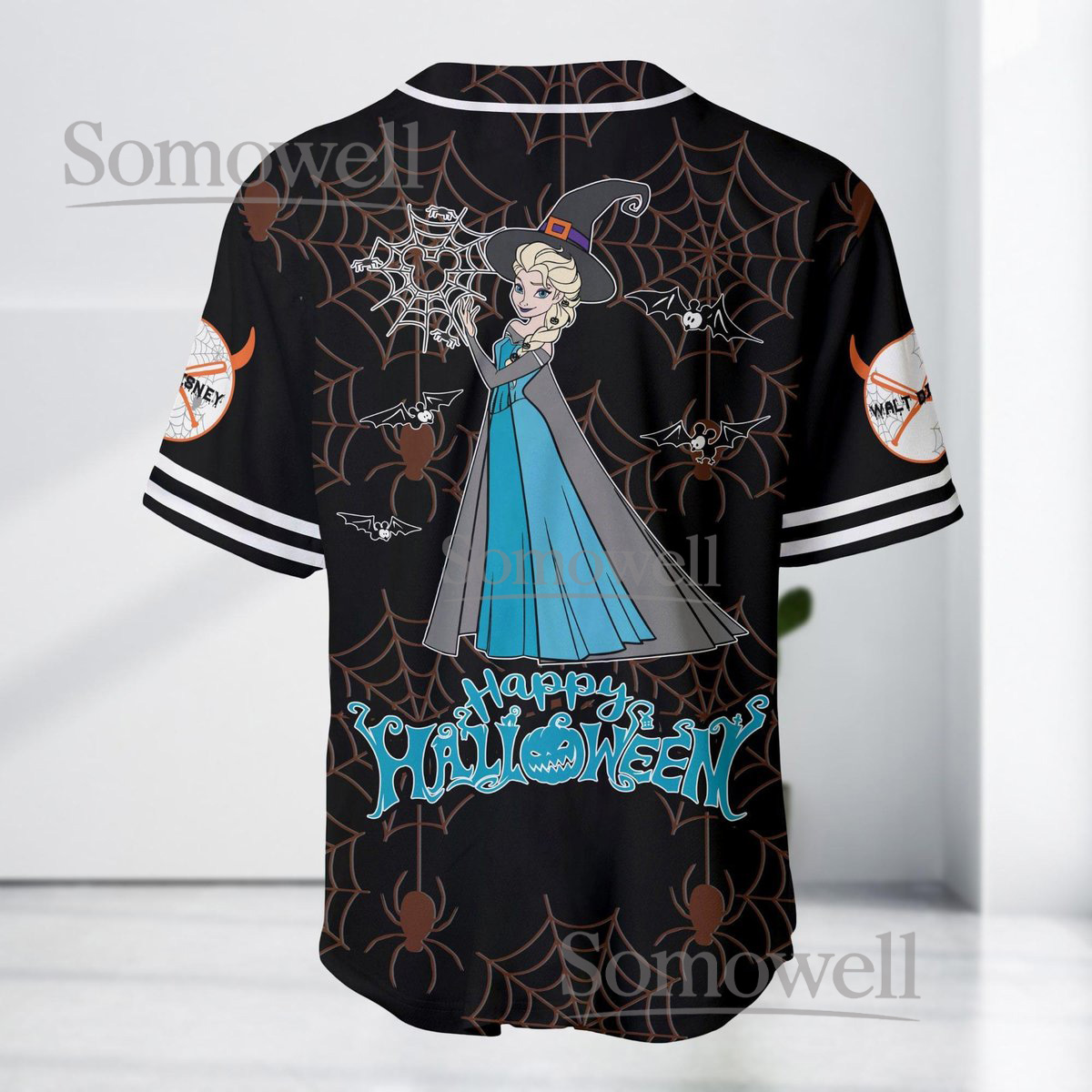 Custom Halloween Elsa Baseball Jersey Shirt Disney Princess Witch Costume Gift