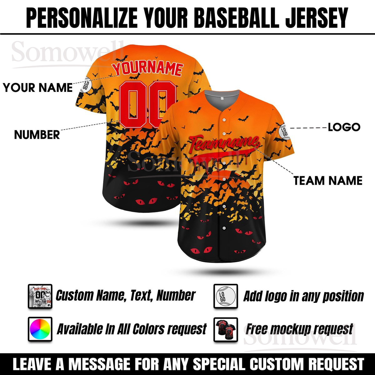Custom Halloween Crop Baseball Jersey with Personalized Team Name and Number Multiple Color Options