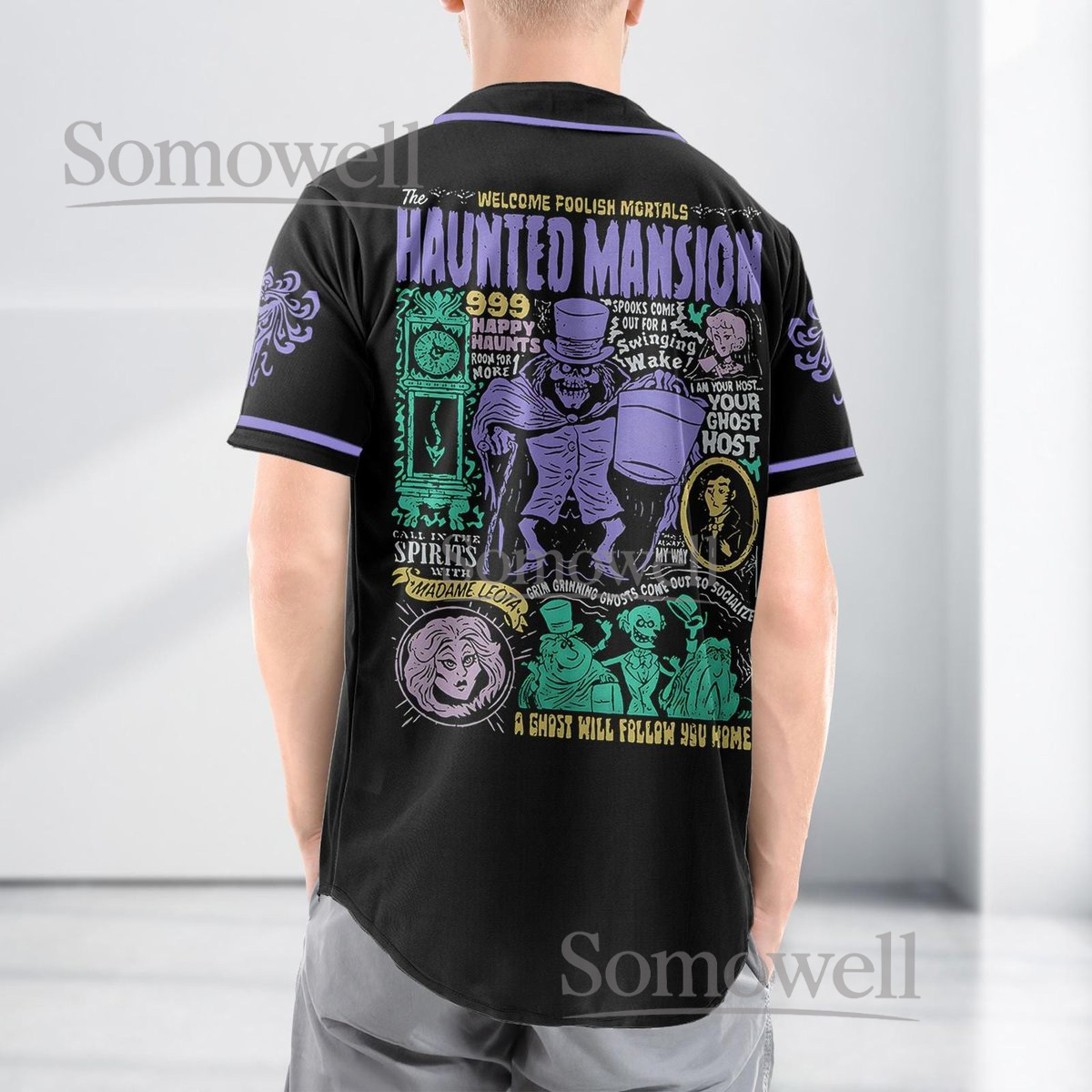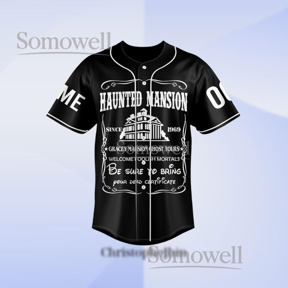 Custom Haunted Mansion Baseball Jersey with Spooky Ghost and Bats Design, Personalized Name and Team Number