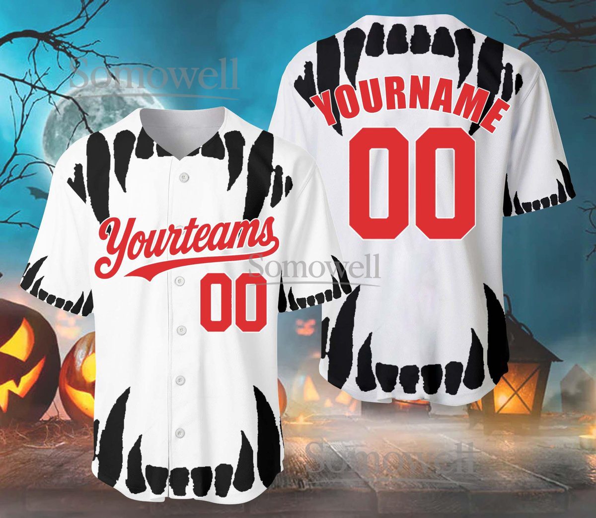 Custom Halloween Teeth Baseball Jersey Team Name Number Scary Edition Available in Multiple Colors
