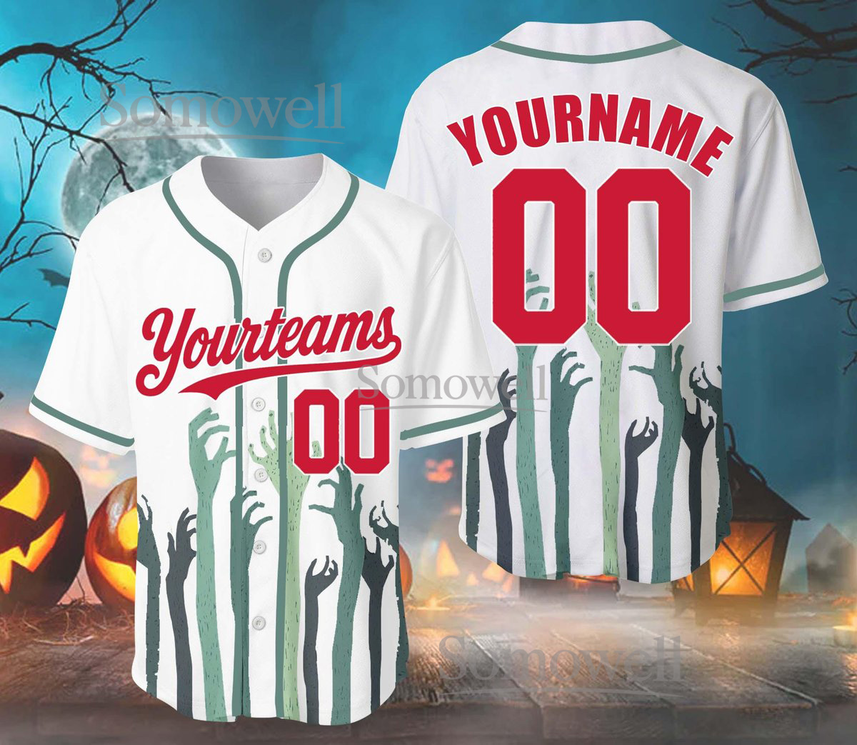Custom Halloween Zombie Hands Baseball Jersey Team Name Number Scary Edition Available in Multiple Colors