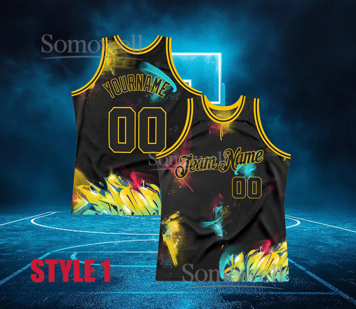 Custom Graffiti Basketball Jersey Team Name Number Neon Splatter Edition Available in Multiple Colors