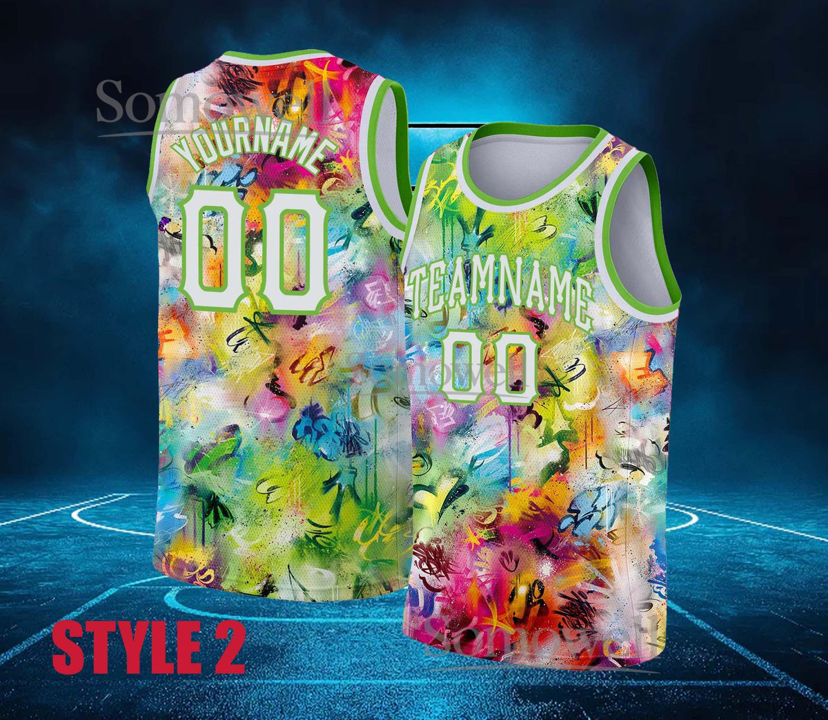 Custom Graffiti Basketball Jersey Multicolor Neon Paint Street Art Personalized Team Name Number Sleeveless Top