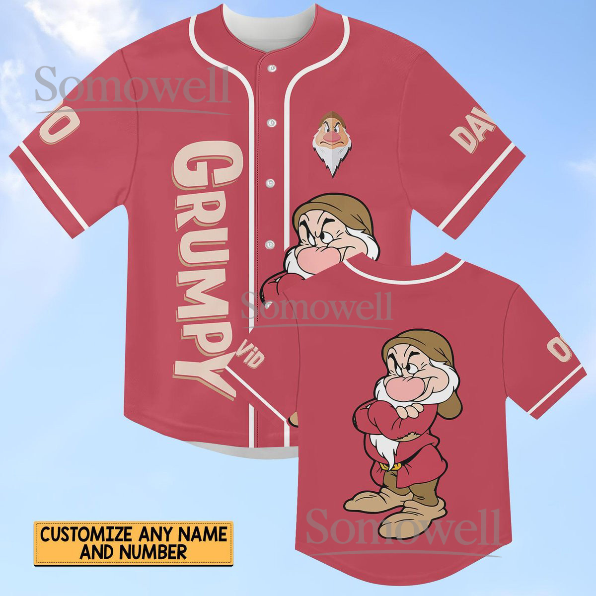 Custom Grumpy Dwarf Baseball Jersey Shirt Red Cartoon Character Disney Personalized Gift