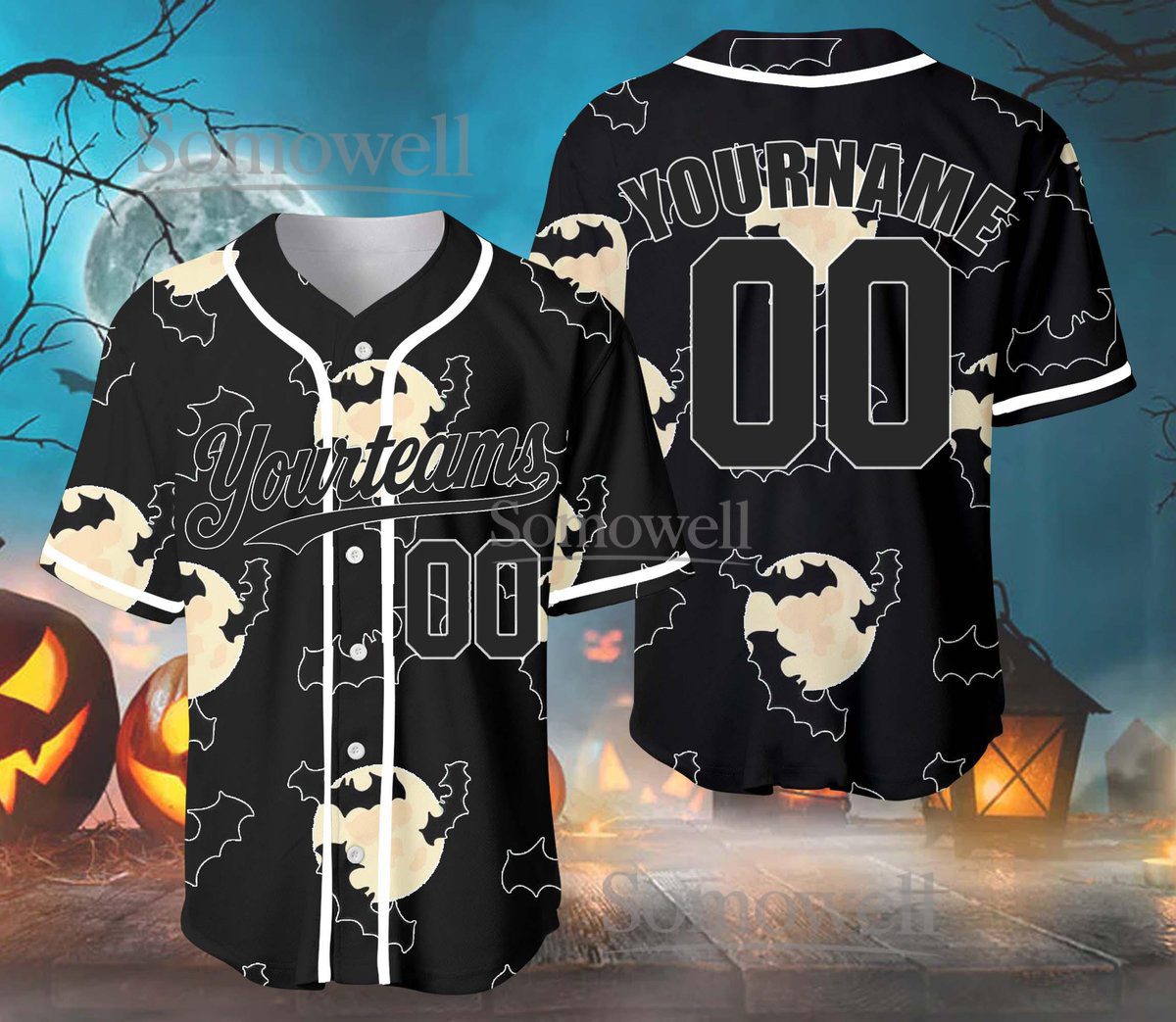 Custom Halloween Bat Baseball Jersey Team Name Number Spooky Edition Available in Multiple Colors