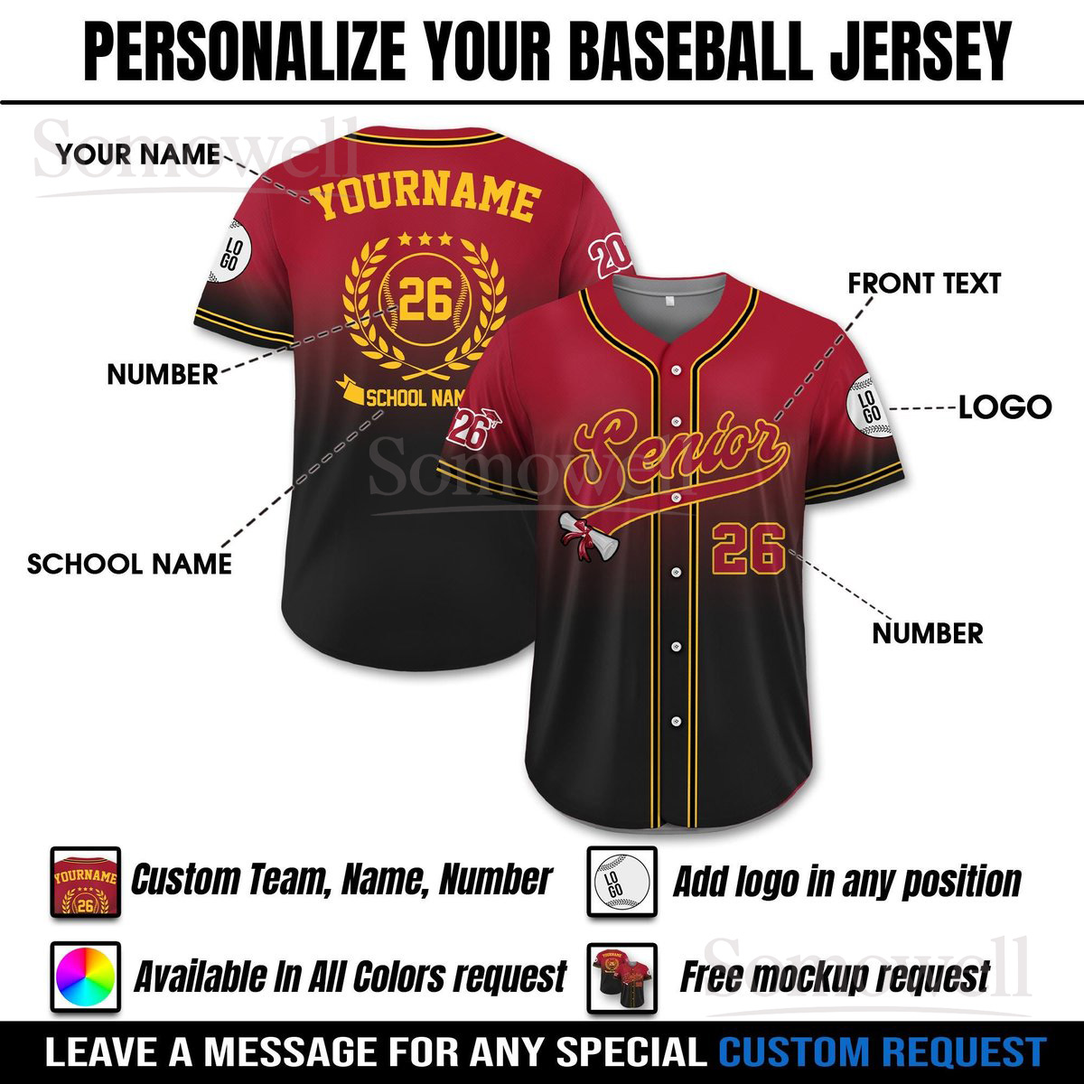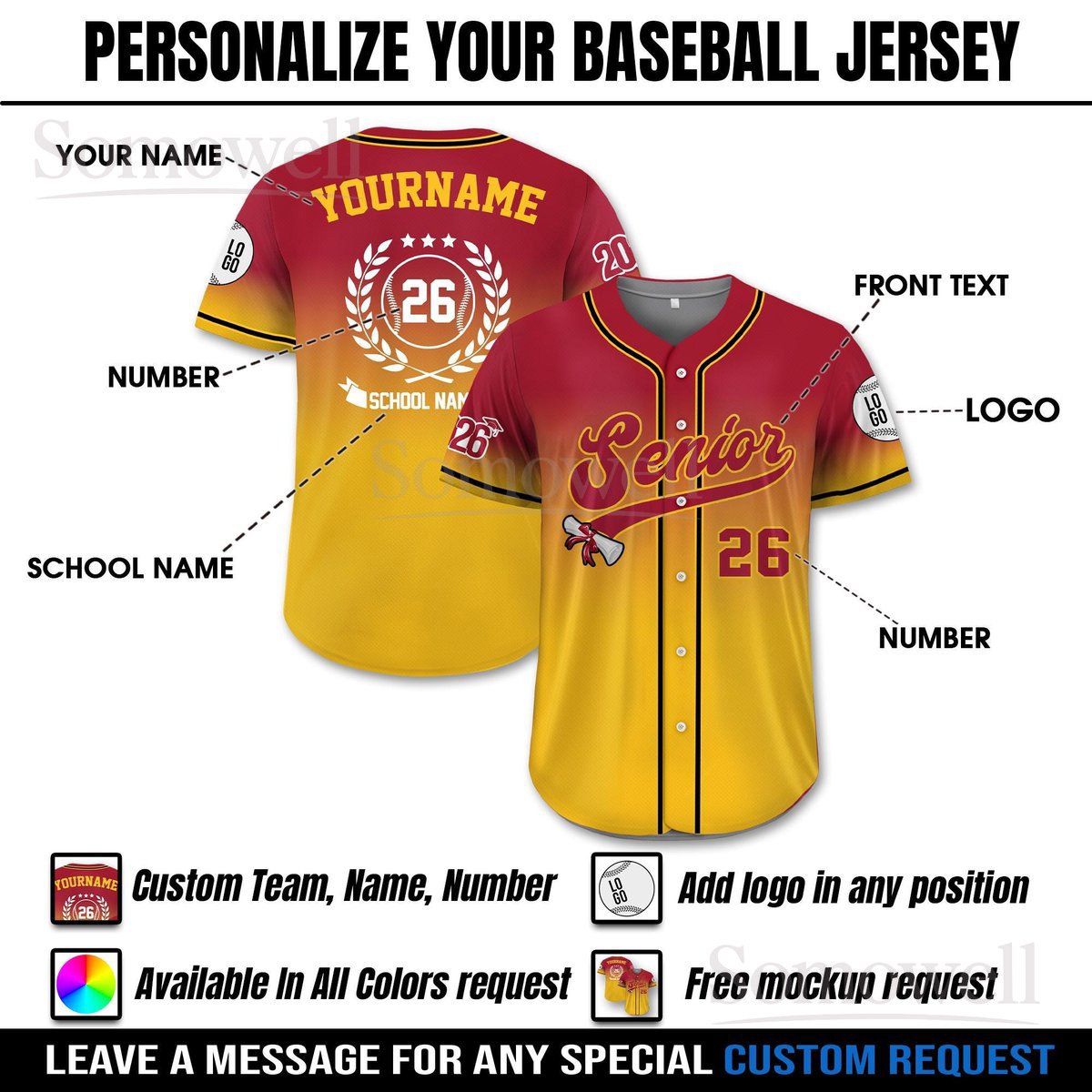 Custom Graduation Senior 2026 Baseball Jersey Personalized Name and Number for Men and Women