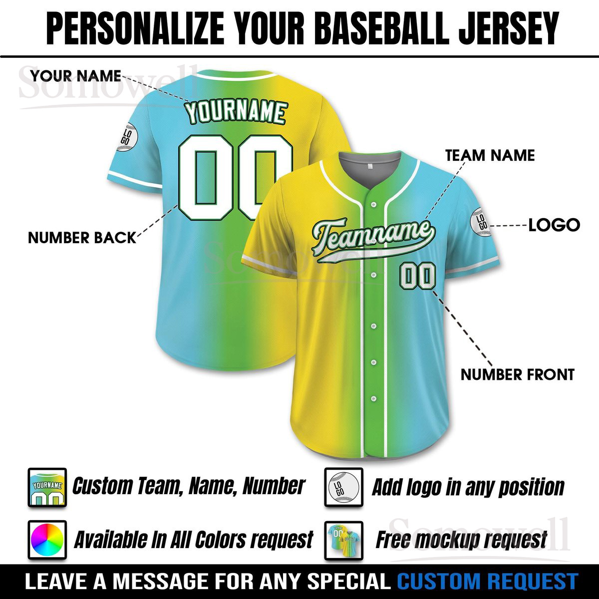 Custom Gradient Baseball Jersey with Team Name Number for Men Women Youth Multi Color Edition