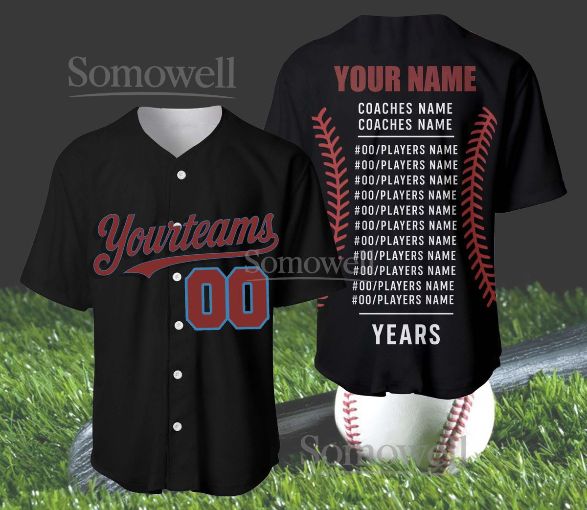 Custom Baseball Jersey with Team Name and Number Personalized for Men Women and Youth in Multiple Colors