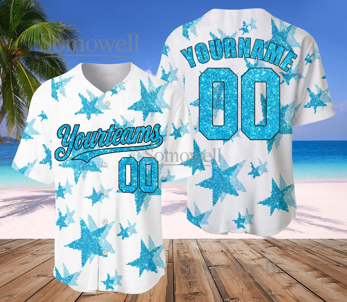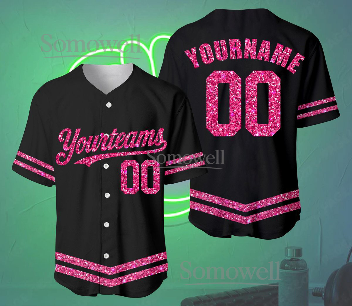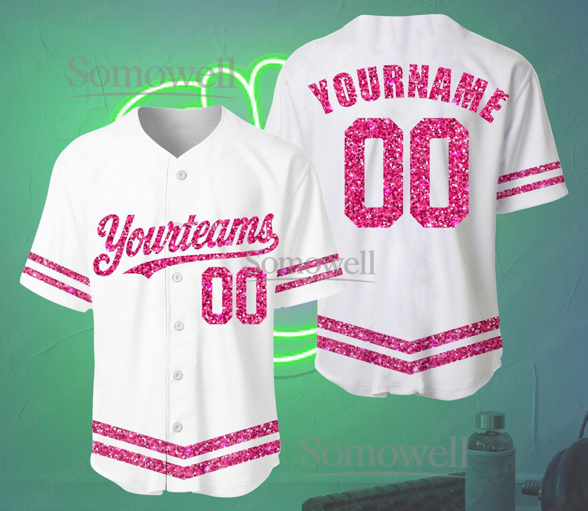 Custom Glitter Baseball Jersey Team Name Number White Pink Star Edition Available in Multiple Colors