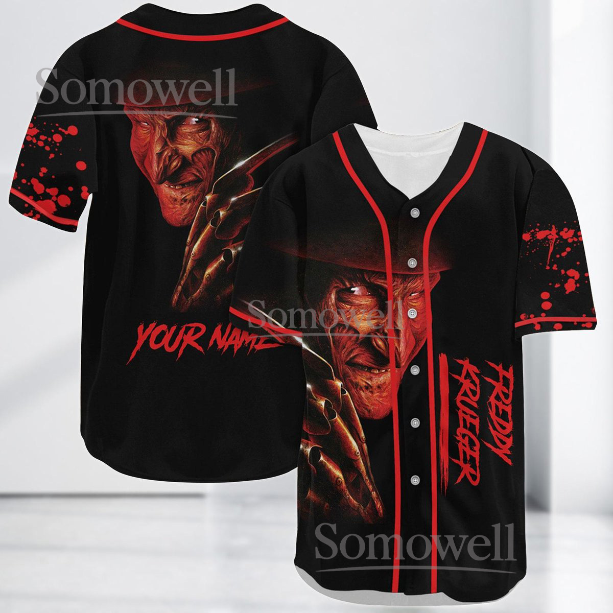 Custom Freddy Krueger Baseball Jersey with Horror Movie Theme, Personalized Name and Team Number