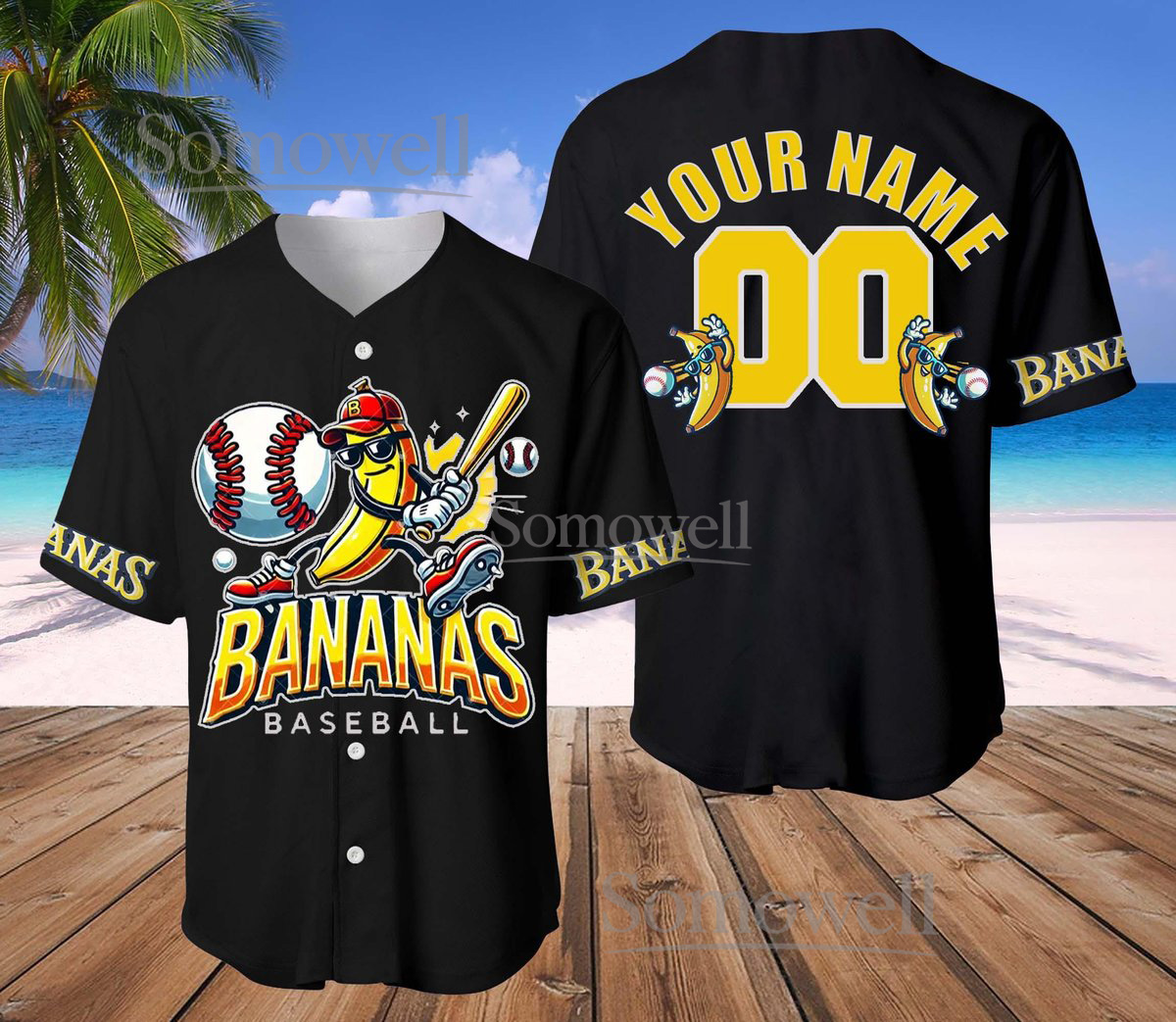 Custom Funny Banana Baseball Jersey Team Name Number Cartoon Edition Available in Multiple Colors