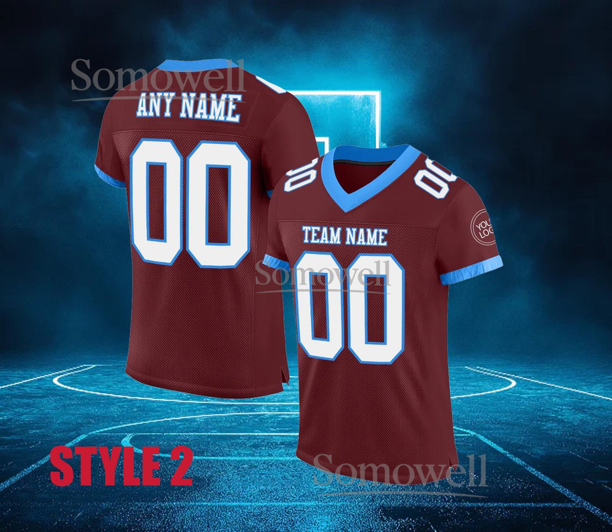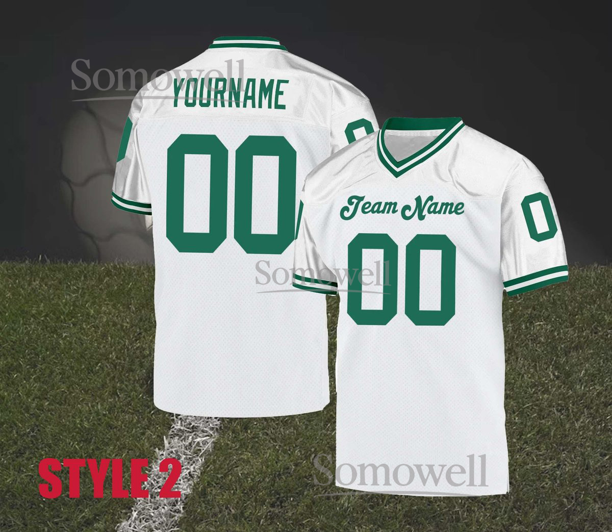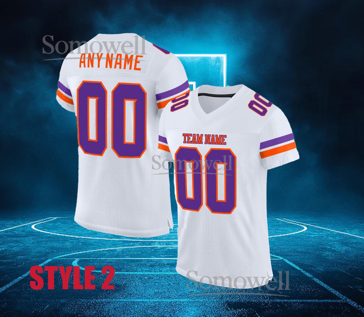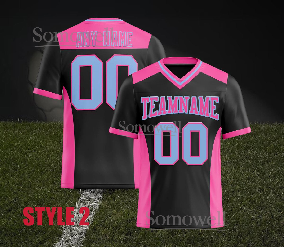 Custom Football Jersey with Personalized Team Name and Number Available in Multiple Colors