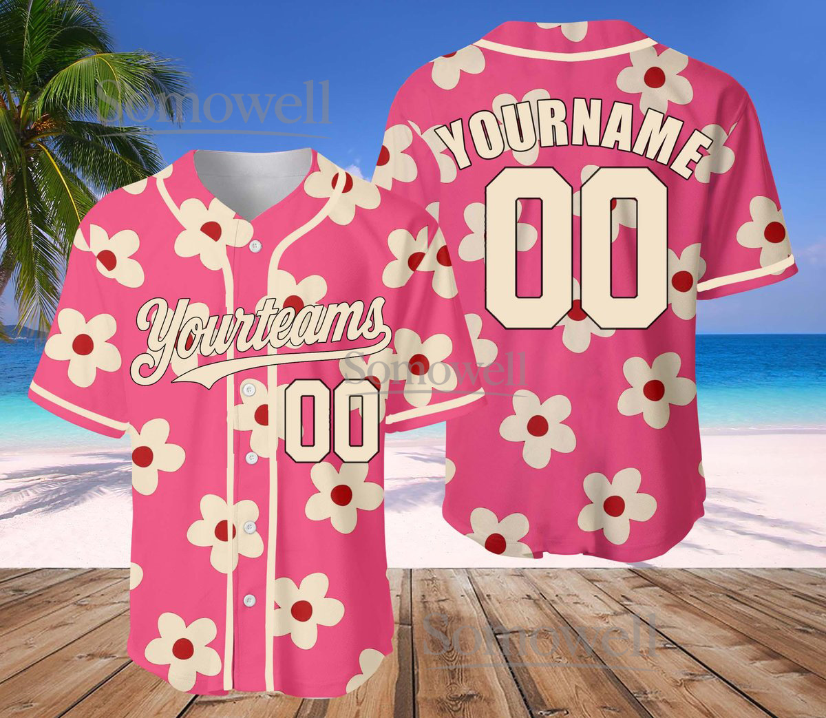 Custom Flower Baseball Jersey with Team Name Number Available in Multiple Colors