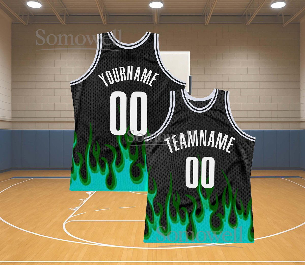Custom Flame Basketball Jersey with Personalized Team Name and Number Available in Multiple Colors