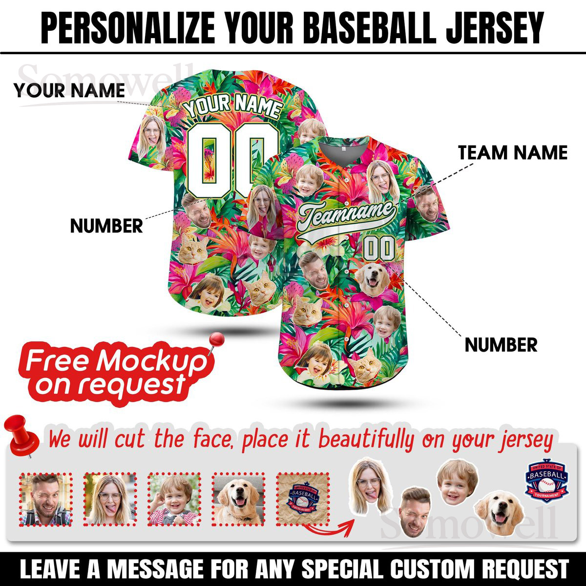 Custom Face Hawaiian Baseball Jersey Personalized Team Name Number Tropical Vacation Style Multi Color Edition
