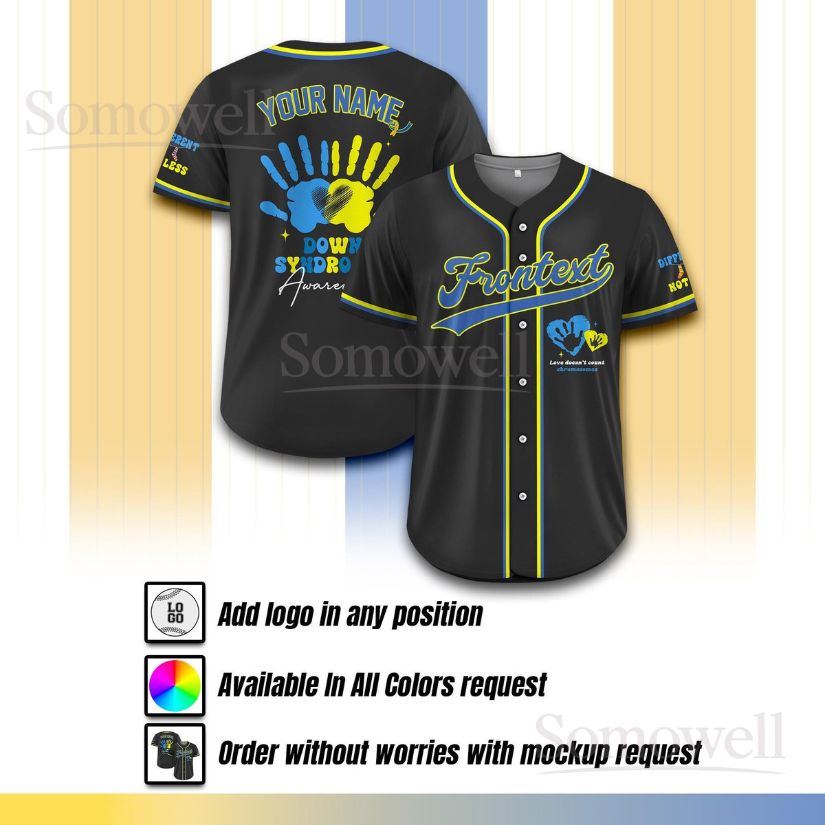 Custom Down Syndrome Awareness Baseball Jersey for Men Women Youth Kid Support Gift Shirt Multi Color Edition