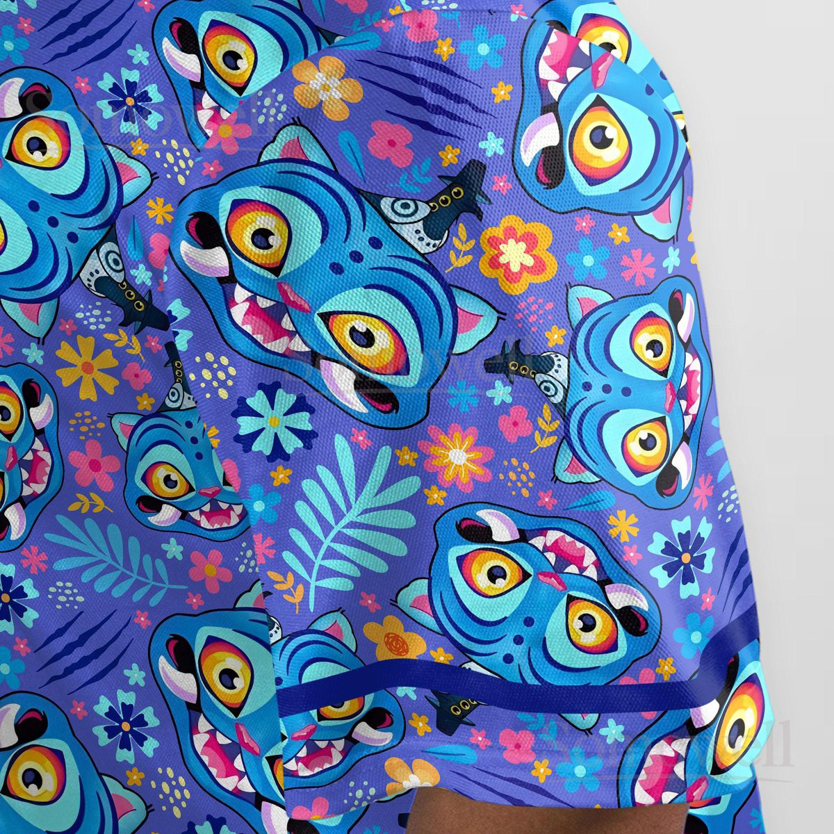 Custom Derpy Tiger Baseball Jersey Shirt for Animal Lovers Whimsical Blue Cartoon Design Perfect for Everyday Casual Wear