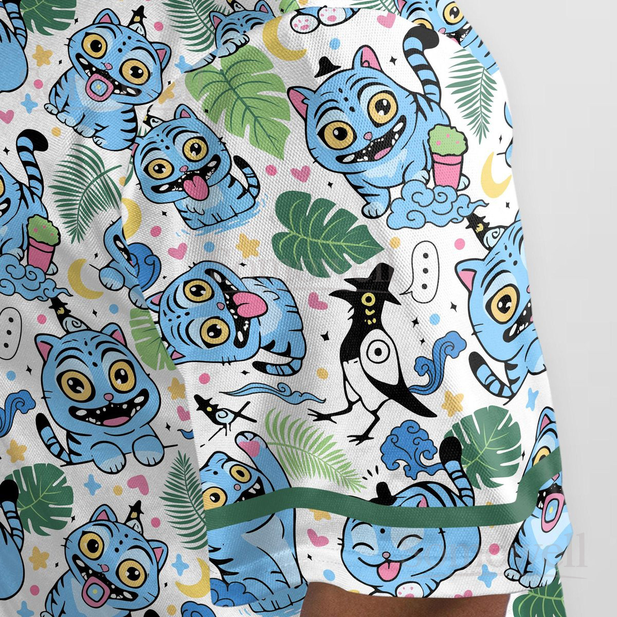 Custom Derpy Tiger Baseball Jersey Shirt for Animal Lovers Blue and Red Playful Cartoon Cat Design Gift Apparel