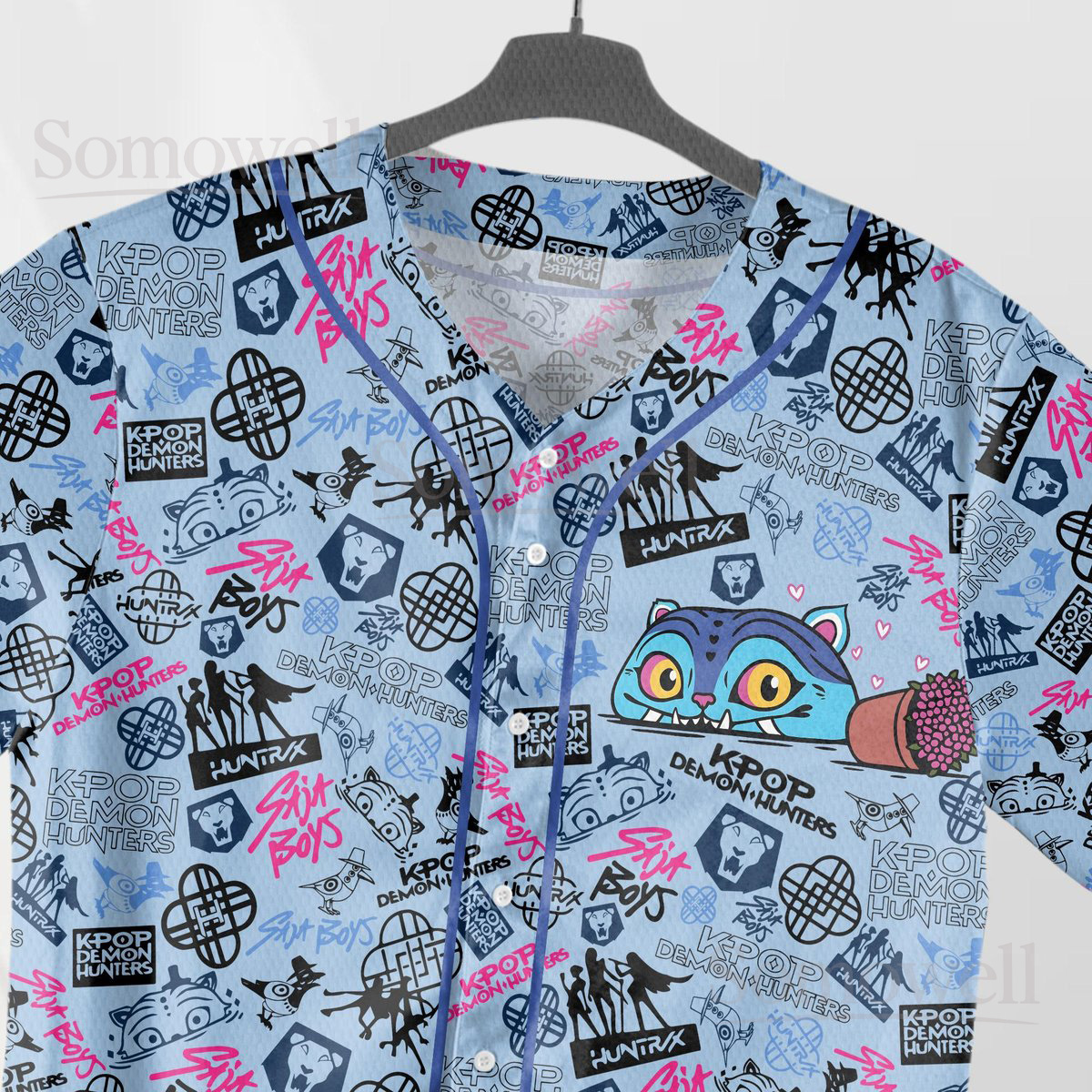 Custom Derpy Tiger Baseball Jersey Shirt for Cartoon Fans Fun Blue and Orange Tiger Pattern Summer Outfit