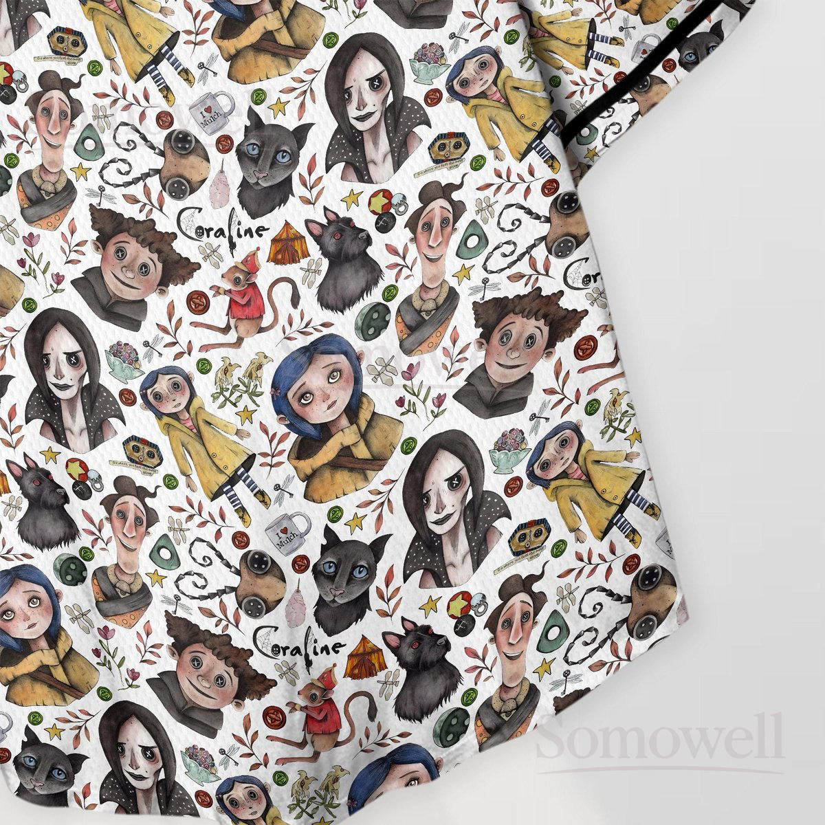 Custom Coraline Baseball Jersey Shirt for Animation Fans White and Black Patterned Design Inspired by Movie Characters