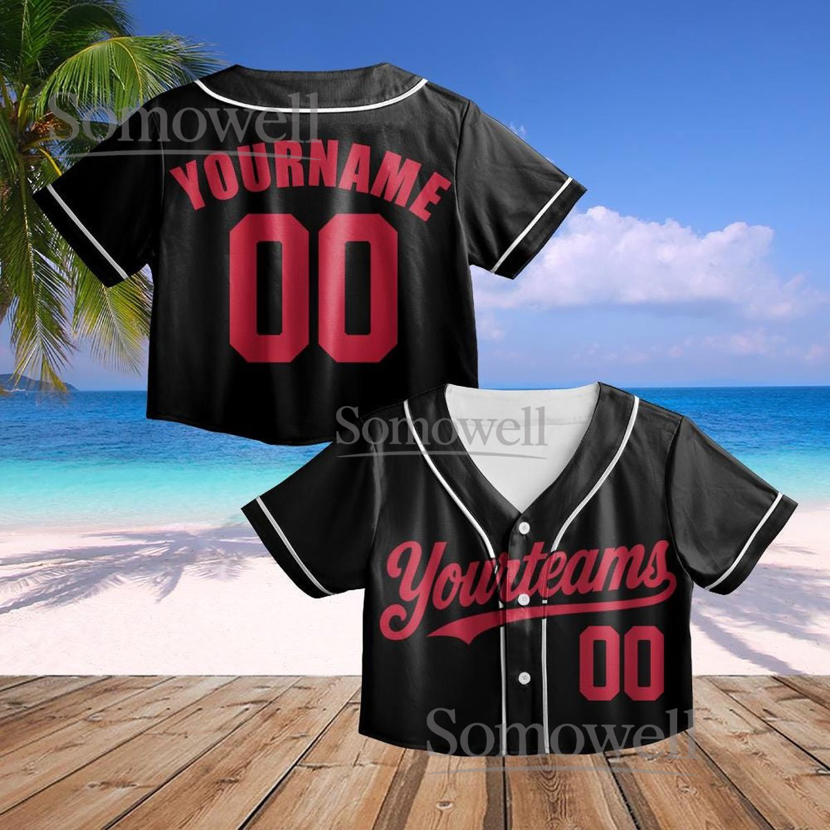 Custom Crop Baseball Jersey White Red Trim Personalized Team Name Number Women Short Shirt