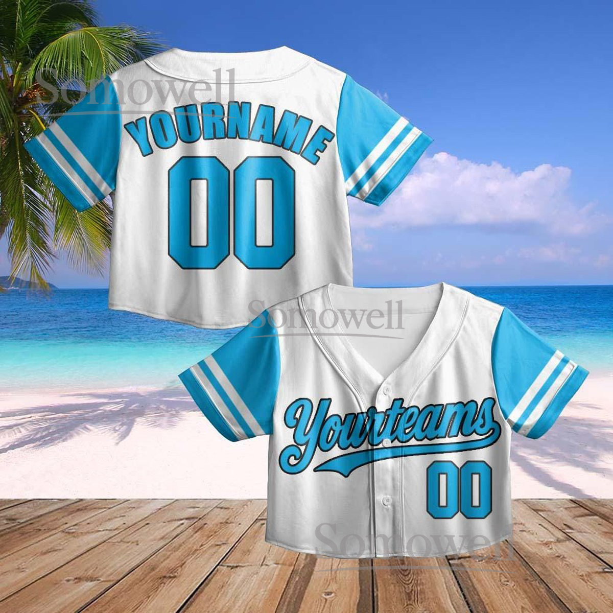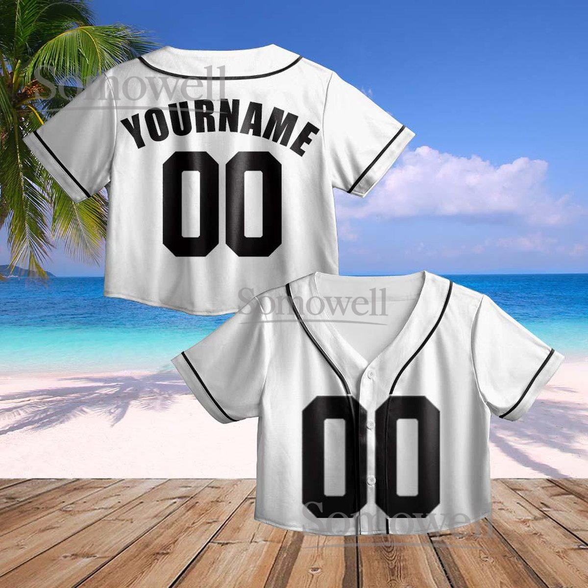Custom Crop Baseball Jersey White Black Stripe Personalized Team Name Number Women Short Shirt