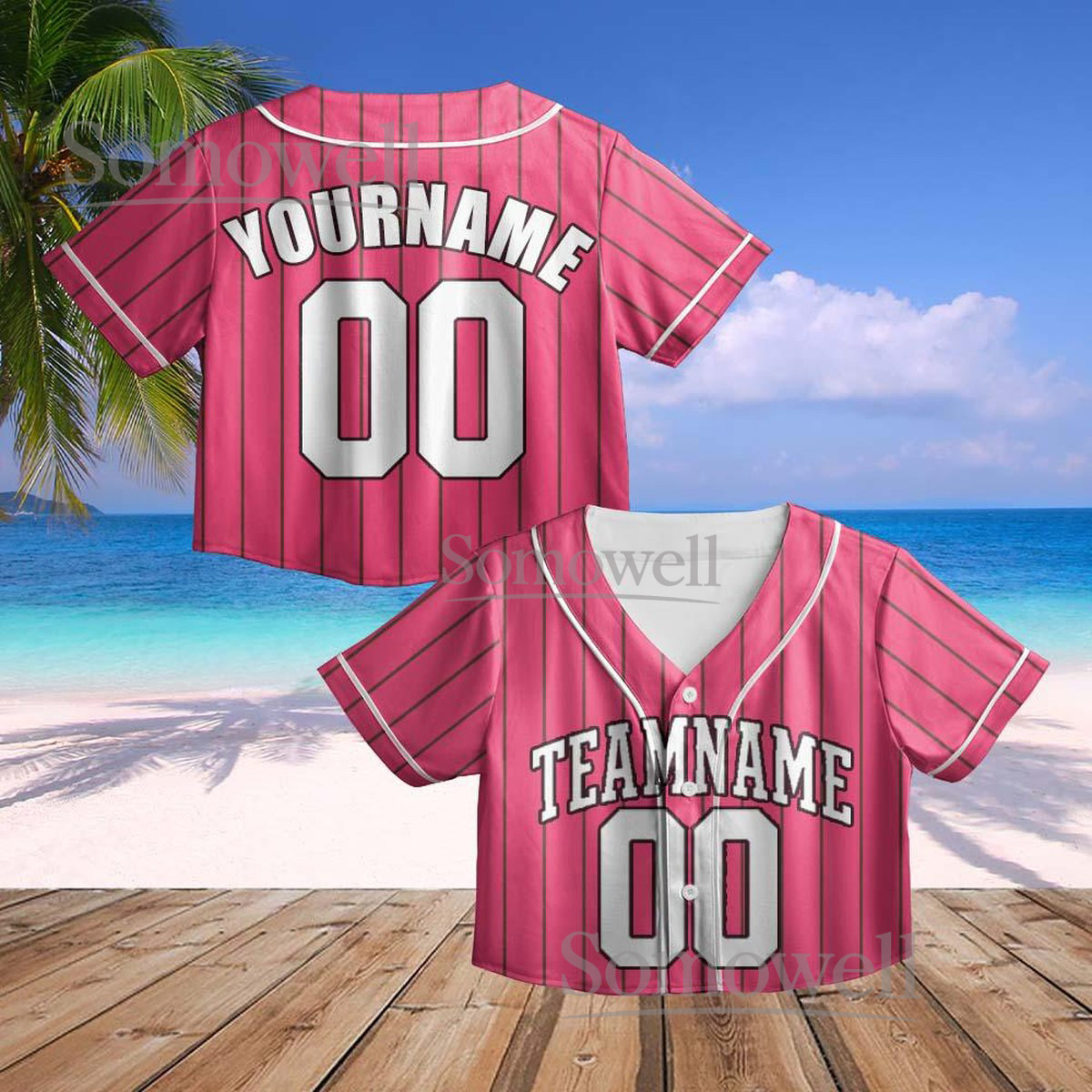 Custom Crop Pink Ribbon Baseball Jersey with Team Name and Number for Breast Cancer Awareness Campaign