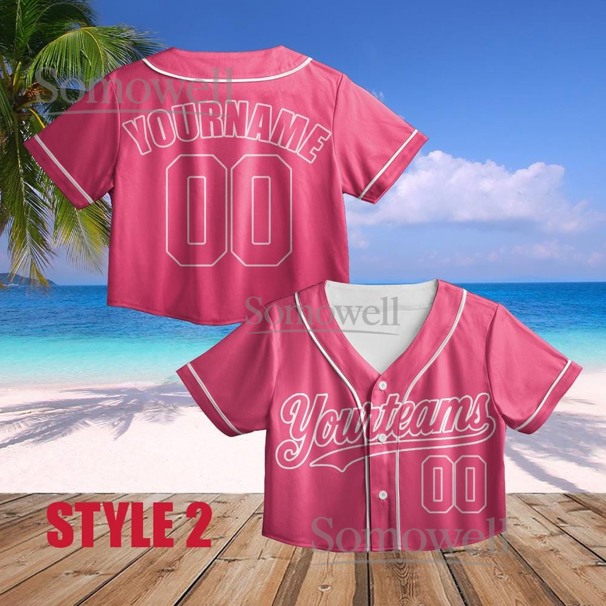 Custom Crop Baseball Jersey Black Pink Trim Personalized Team Name Number Women Short Shirt