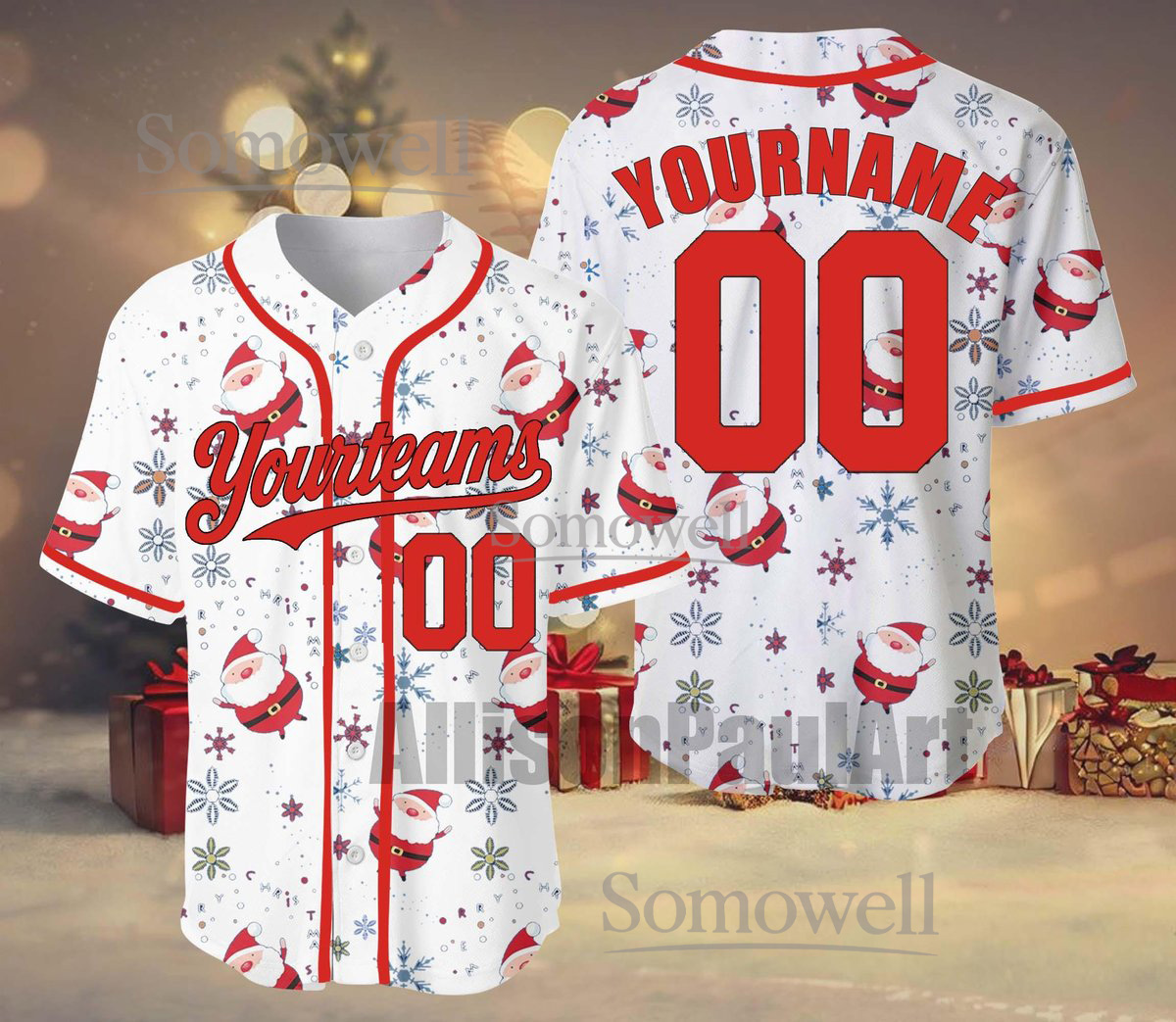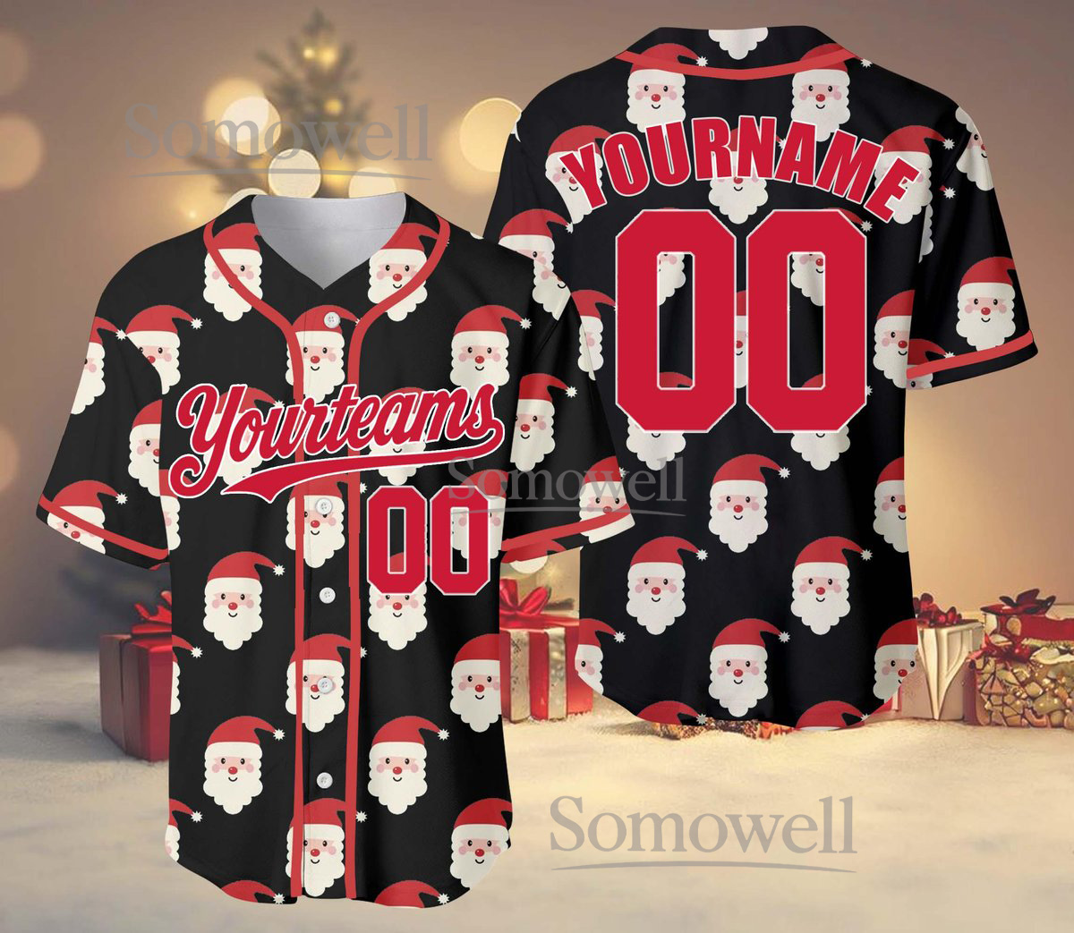 Custom Christmas Santa Baseball Jersey Team Name Number Black Snowflake Edition Available in Multiple Colors