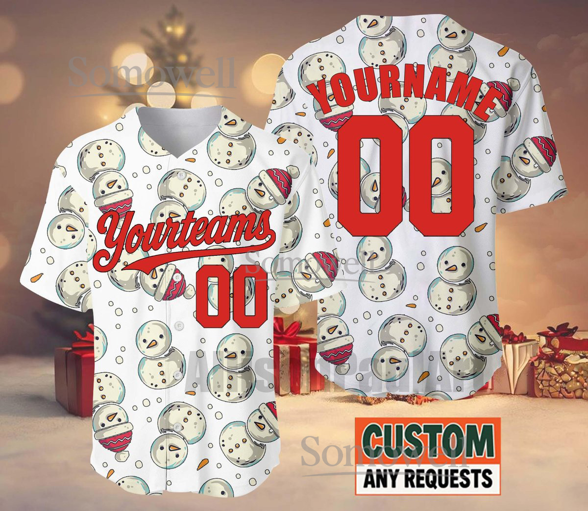 Custom Christmas Baseball Jersey Snowman Pattern Edition Available in Multiple Colors