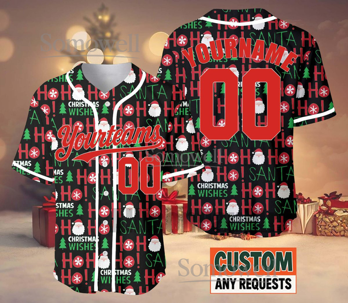 Custom Christmas Baseball Jersey Santa Ho Ho Ho Edition Available in Multiple Colors