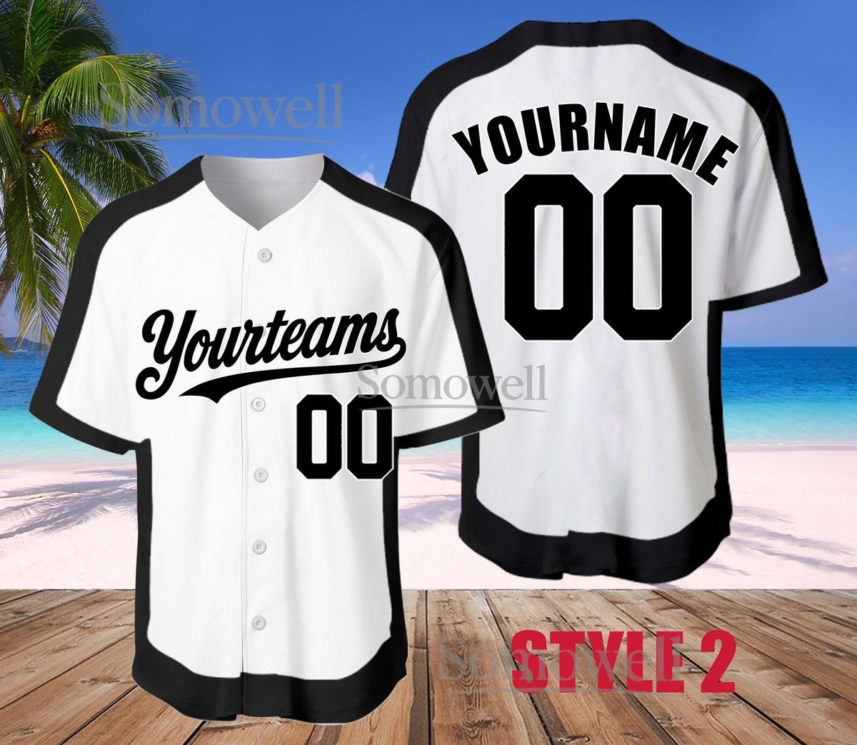 Custom Black White Baseball Jersey with Team Name Number Available in Multiple Colors