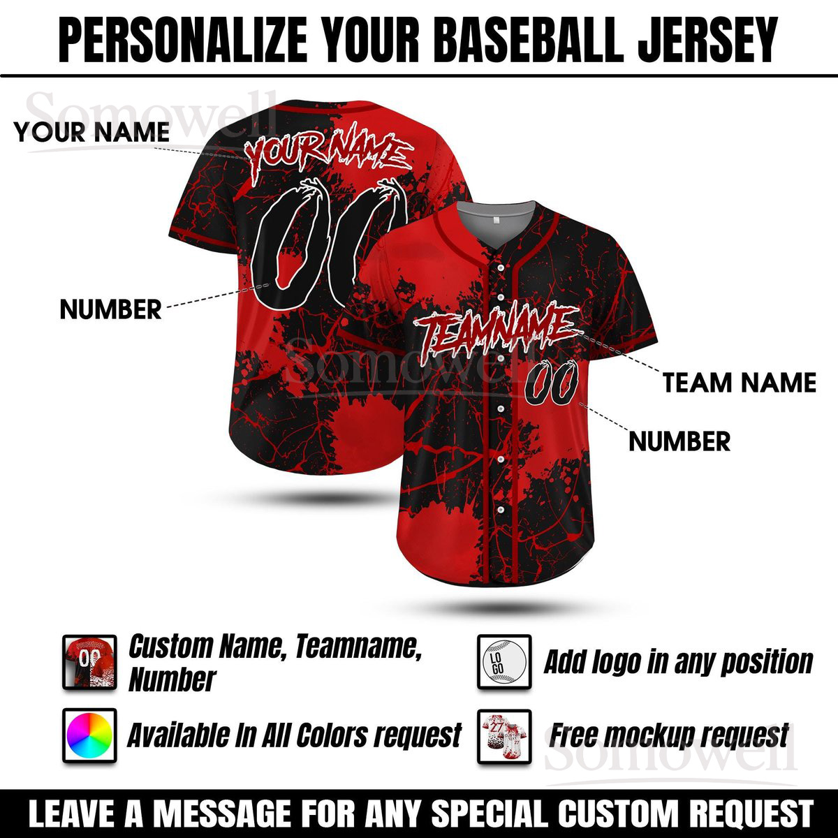 Custom Blood Splatter Halloween Costume Baseball Jersey Personalized Team Name and Number Edition
