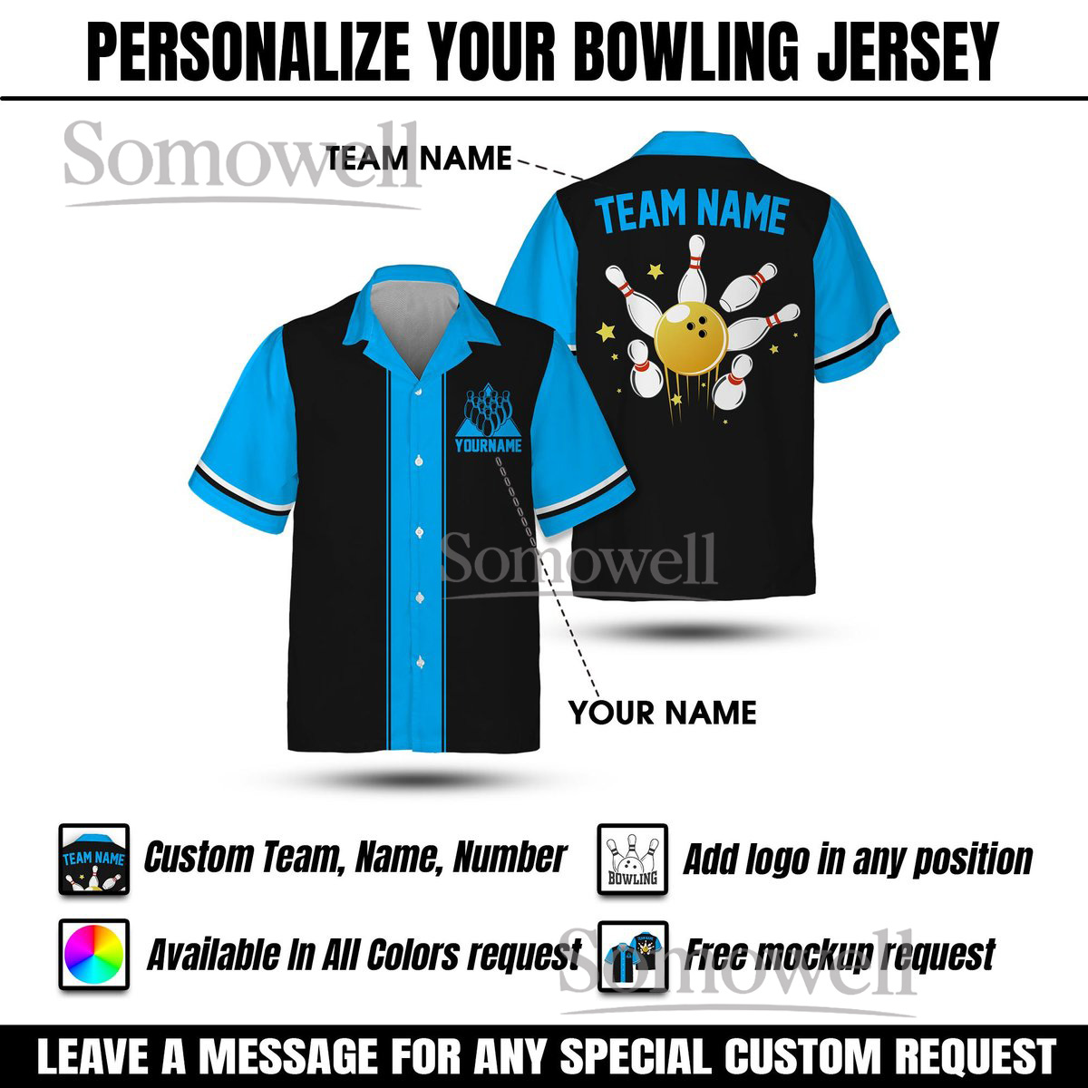 Custom Bowling Team Jersey, Personalized Name and Number, Colorful Bowling Ball and Pins Shirt for Player